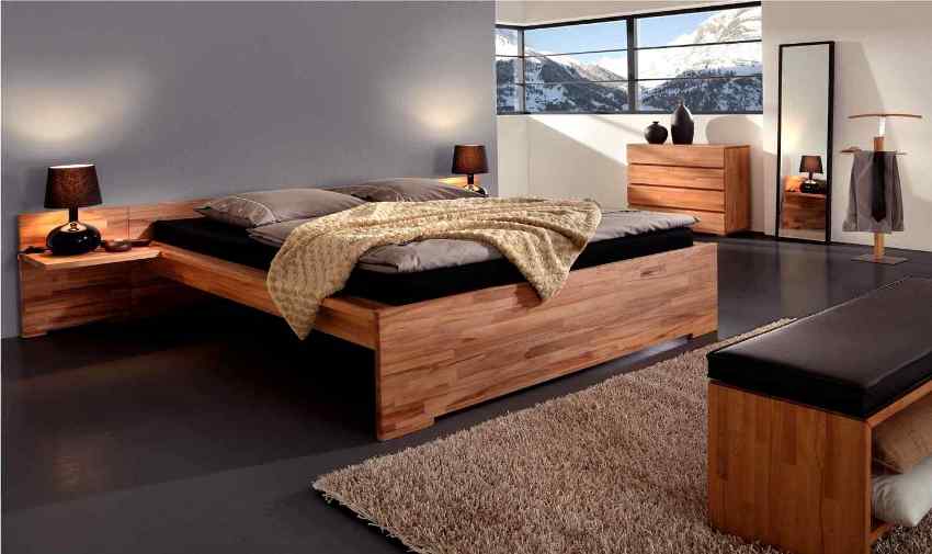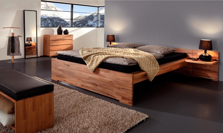 Important! One of the main criteria when choosing furniture for a bedroom made of wood is a solid frame, which serves as the basis for any bed.