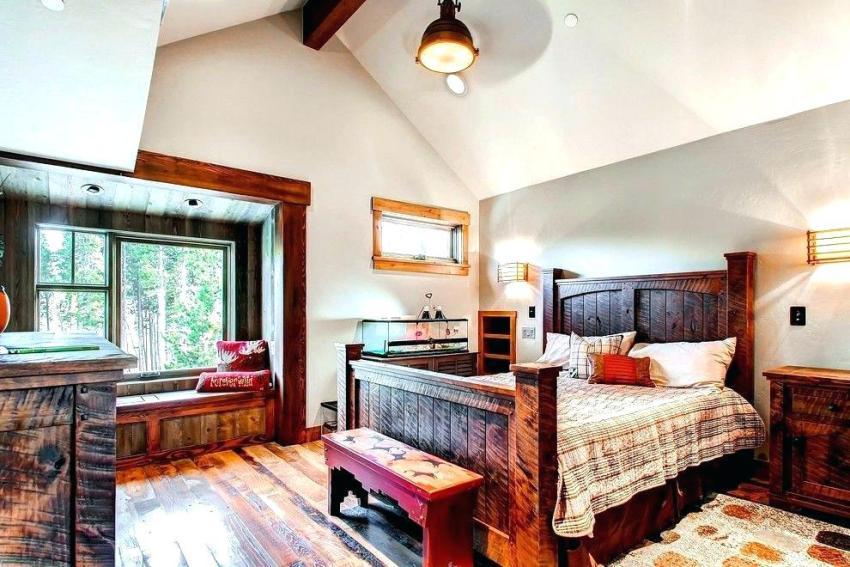 The second advantage is the fact that the pine wood itself looks beautiful and can be left in its original form. Shades of sunny amber will fill the bedroom with a pleasant palette, make it warm and cozy. The natural colors of the pine boards are unobtrusive, and the ornate pattern of the wood structure does not bore and pleases the eye.