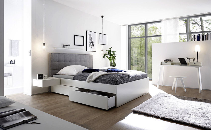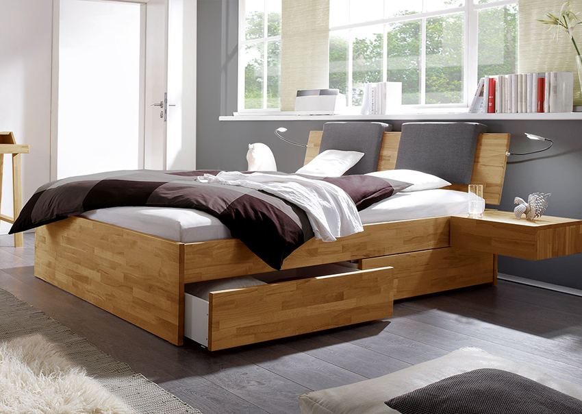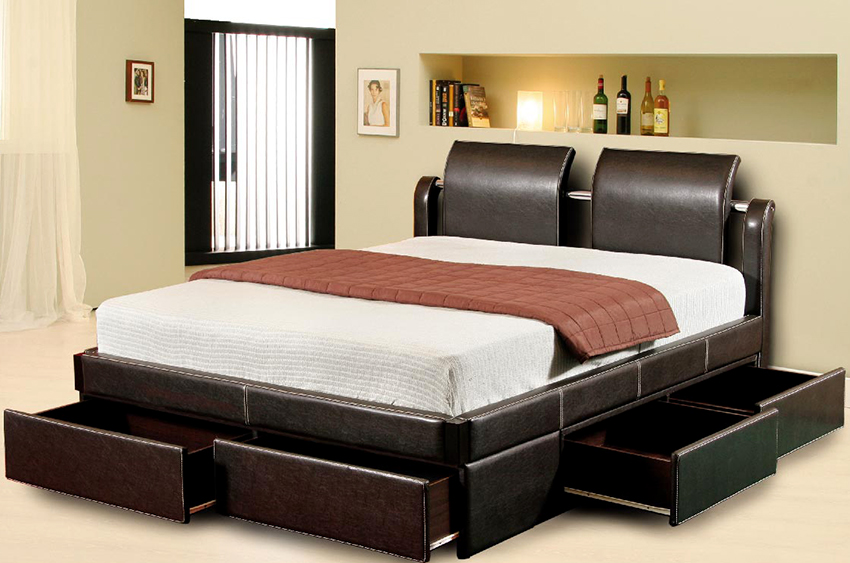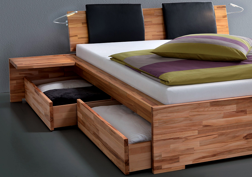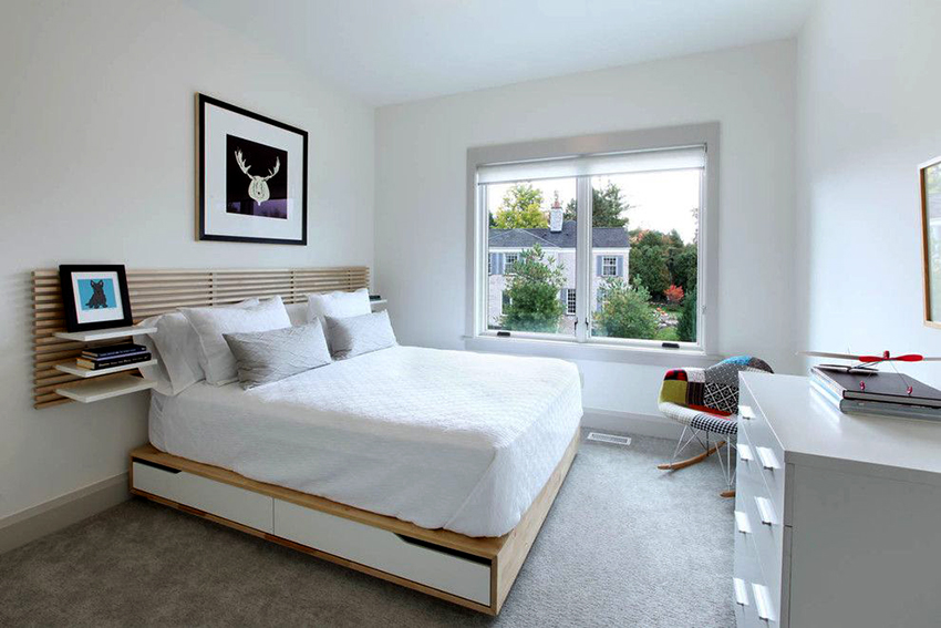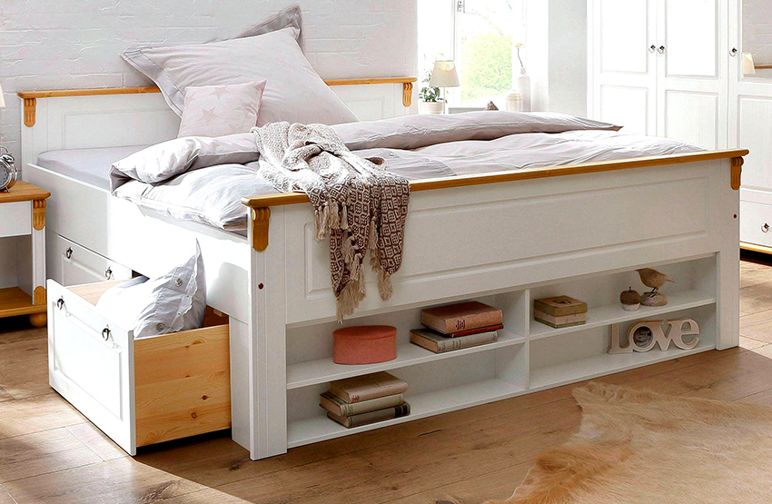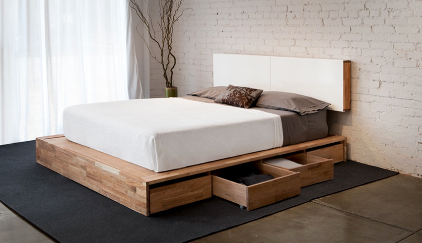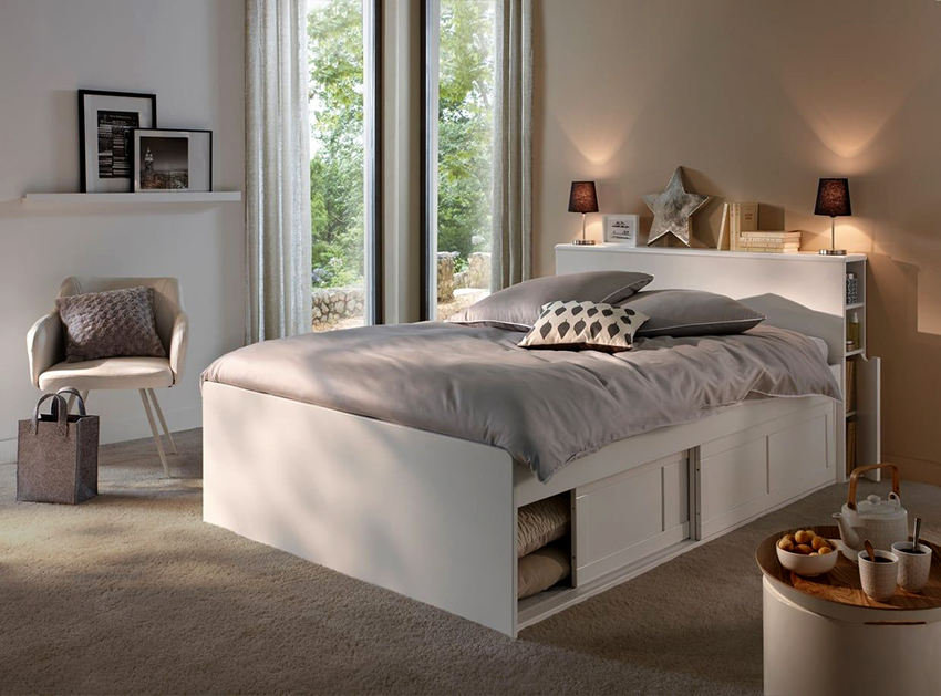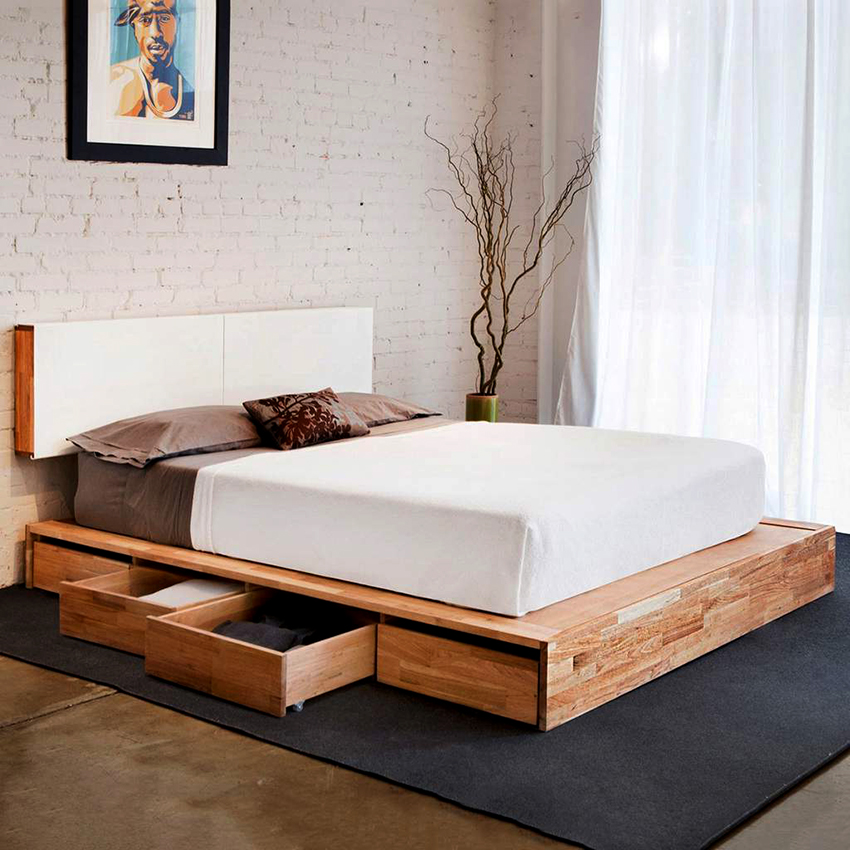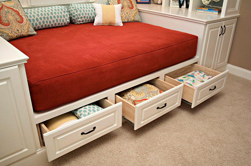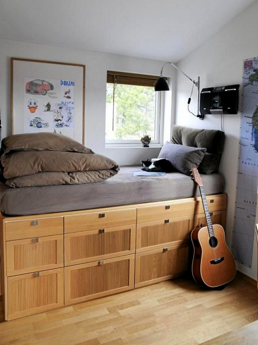 A bed equipped with drawers will help save usable space in the room