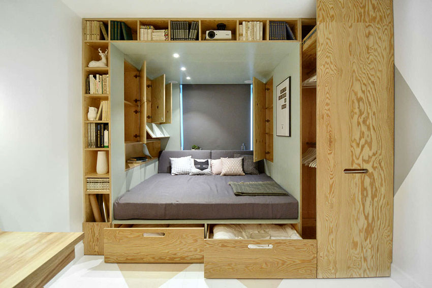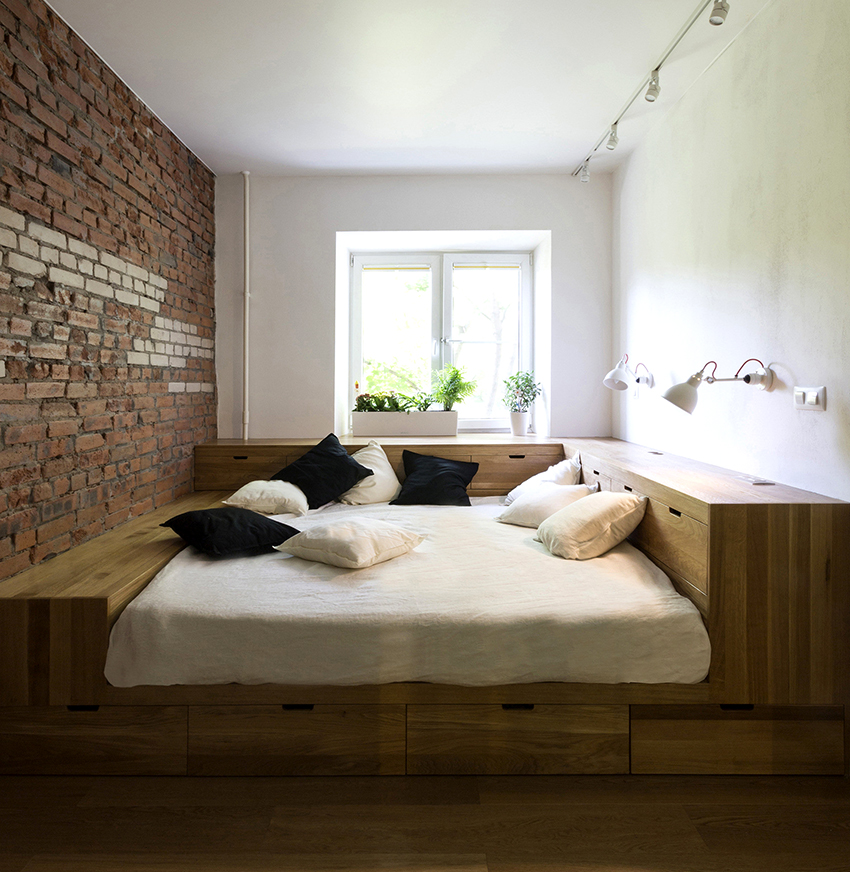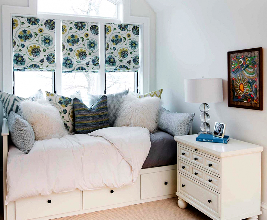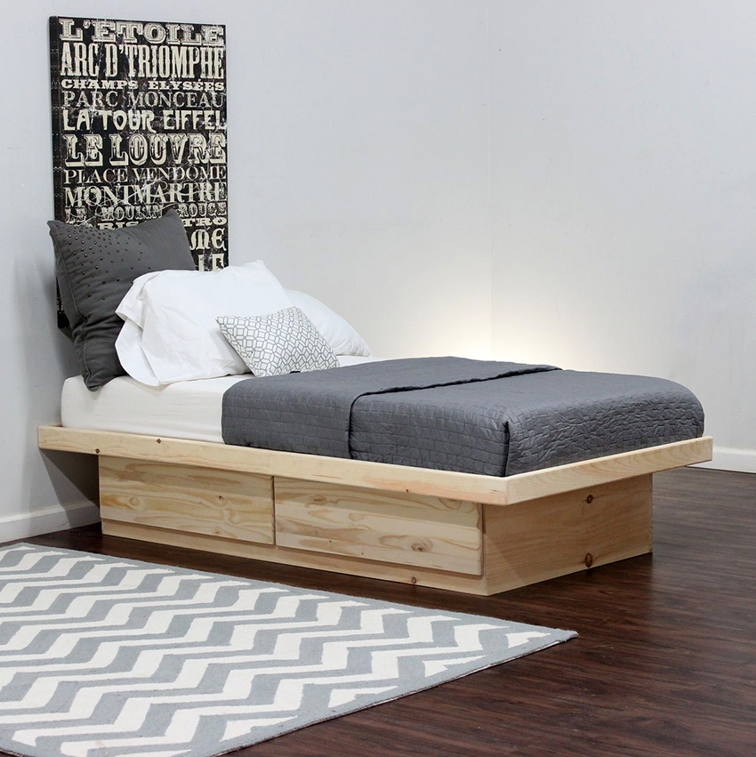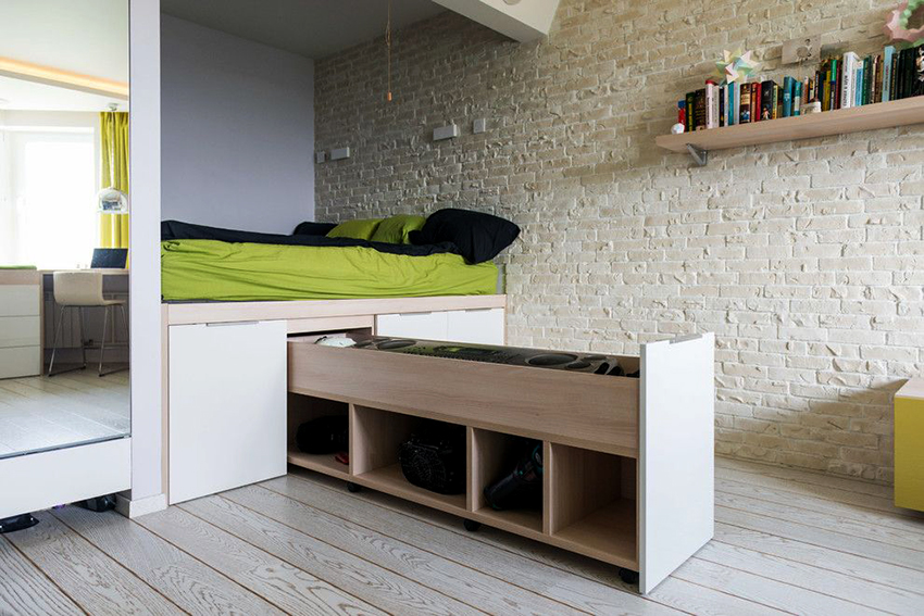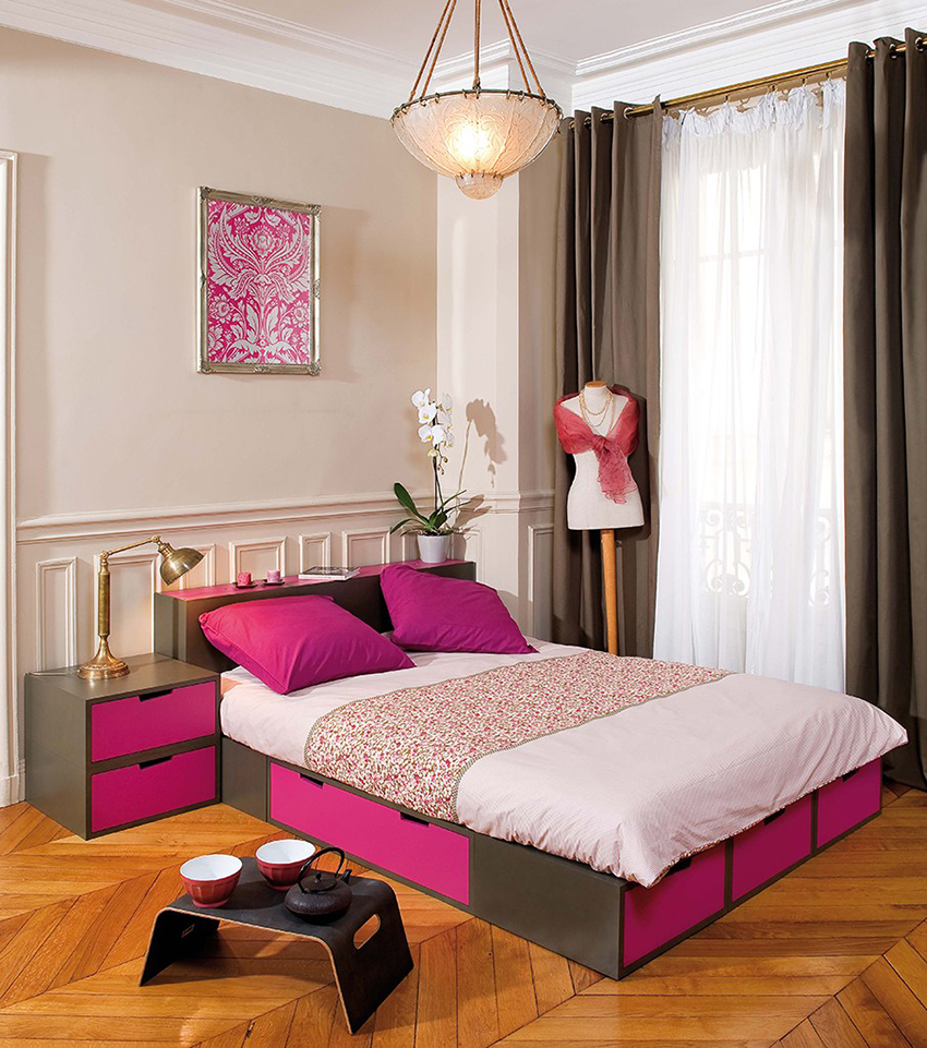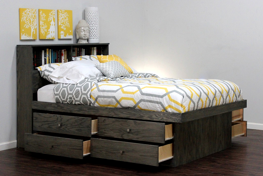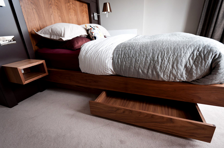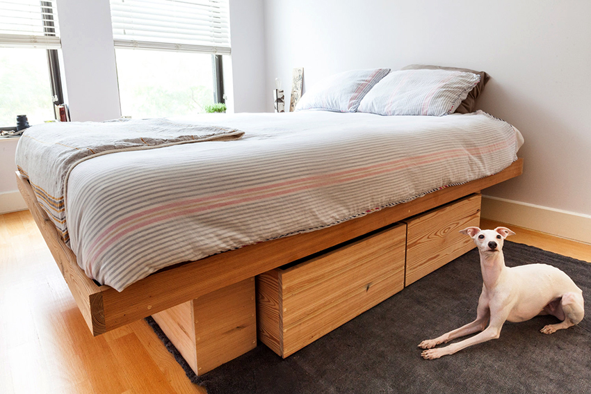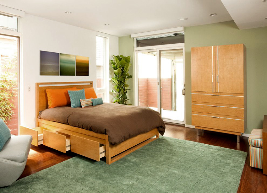A bed equipped with drawers will help save usable space in the room