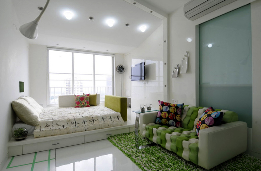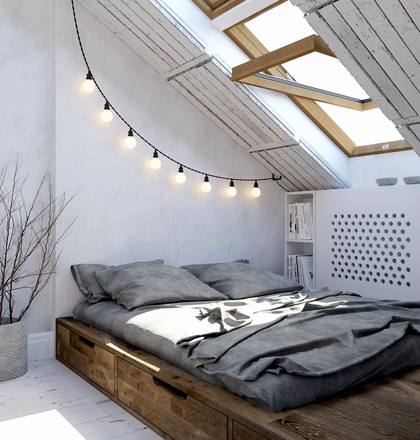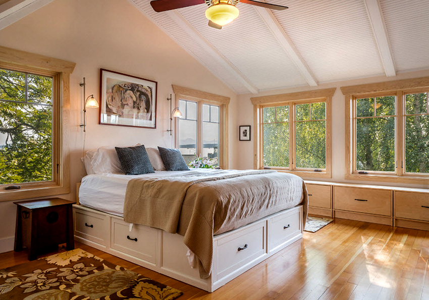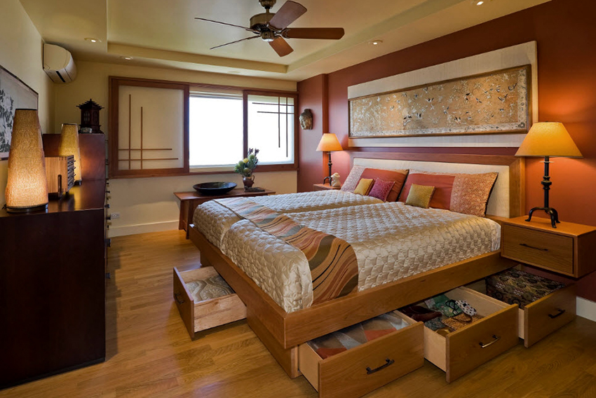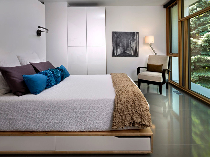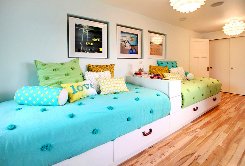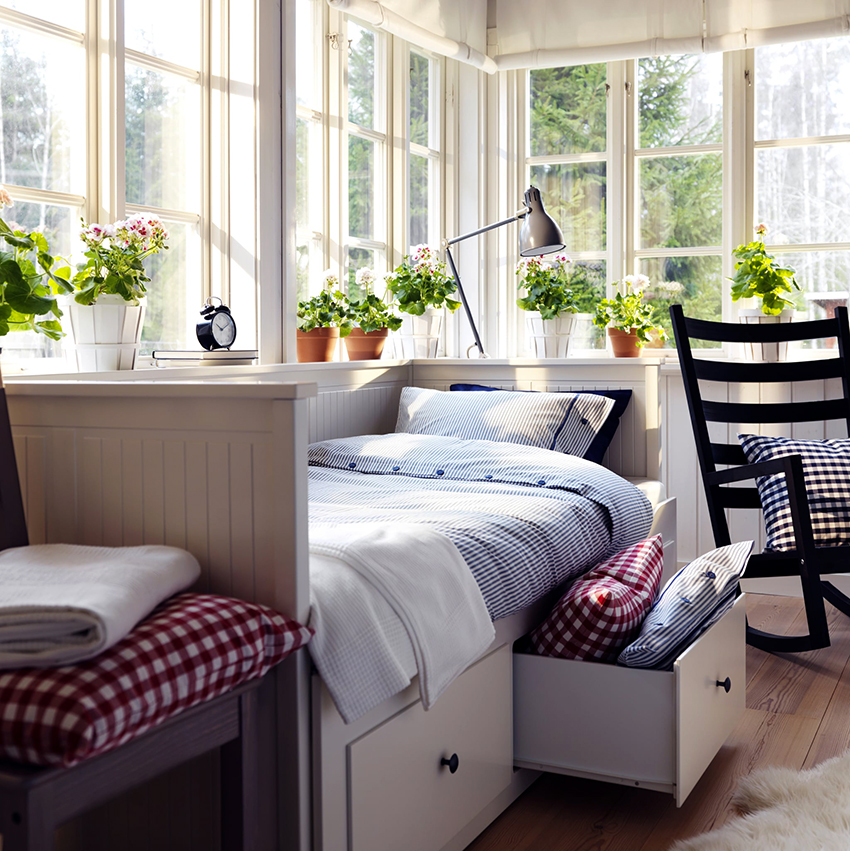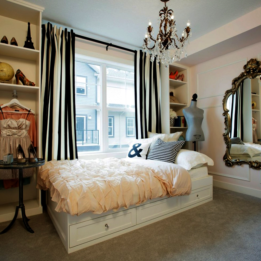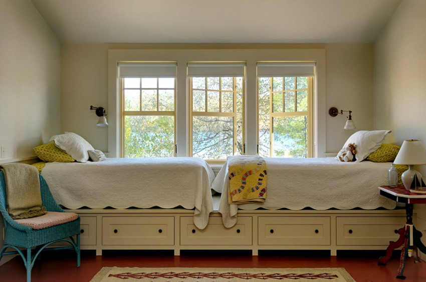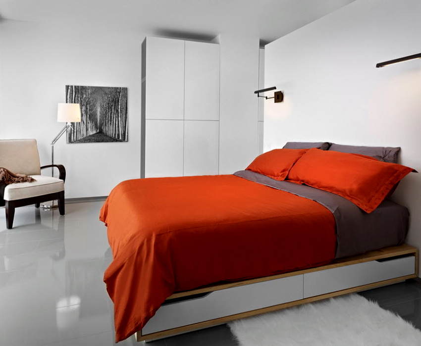 A bed equipped with drawers will help save usable space in the room
