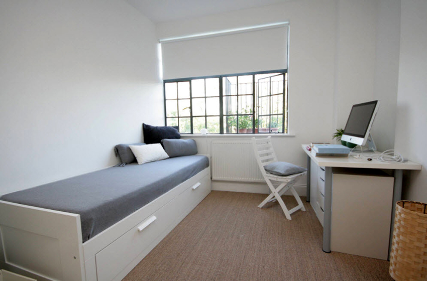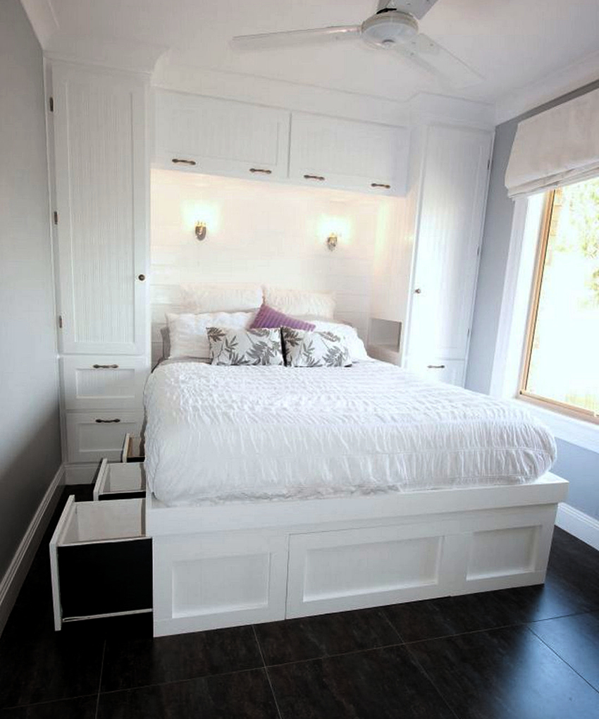 A bed with drawers is the best choice for a bedroom with a small area