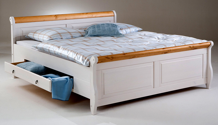 A bed with drawers for storage 160x200 cm is considered the minimum option for a double product. Such furniture is optimal for organizing a sleeping place for two people of average build. If people are large, overweight, or prefer to sleep with their arms outstretched, it is better to immediately choose a larger double bed - 180 or 200 cm wide.