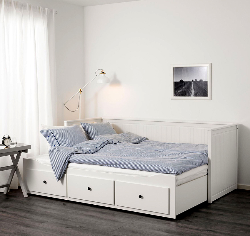 A large selection of such products is offered by the IKEA company, where you can choose beautiful children's colors, as well as purchase a suitable option for the price. For example, the Malm models are designed for children and adults and are distinguished by the presence of two standard drawers. If you need more compartments, it is better to pay attention to the Hemnes series. Such products are couches with three spacious drawers.