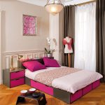The size of the bed is selected based on the area of the room. The correctly chosen option fits perfectly even in a small room. An important advantage of using such furniture is the absence of dust under the mattress, because the entire space is filled with boxes. Some people see this as a minus, since the compartments complicate the process of airing the bottom of the mattress.