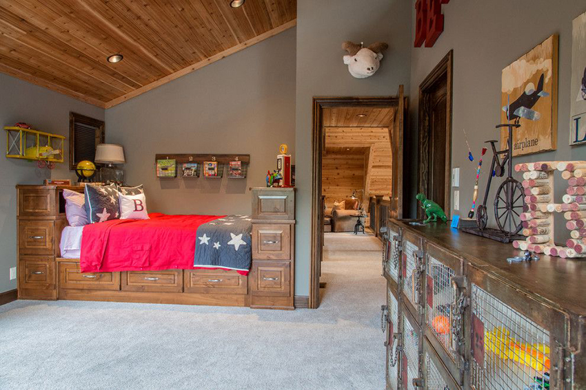 Separately, there should be loft beds or beds with stairs, which can be used for children from 3 years of age and older. Often such structures have two floors and are intended for two children. In this case, the boxes are located both in the stairs and under the berth on the ground floor.For added safety, the upper bunk is equipped with a border guard.
