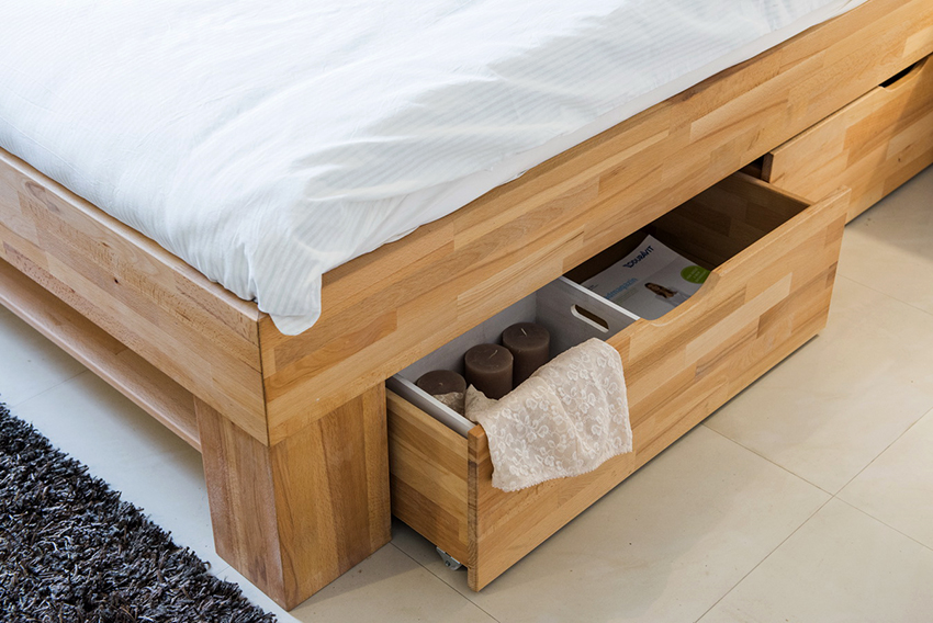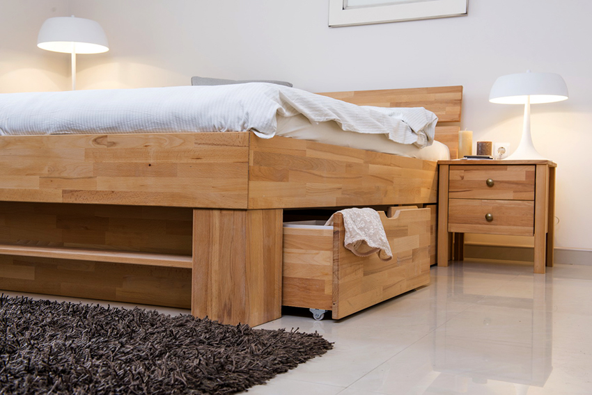 Bed drawers can store both bed linen and clothes or other items