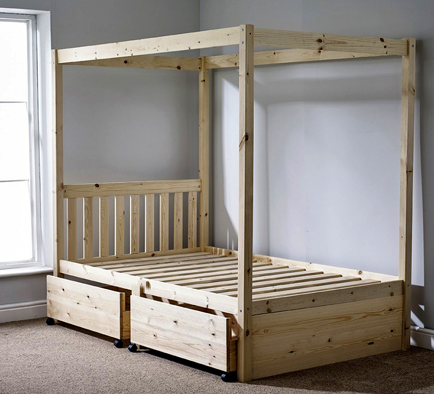 Do-it-yourself or custom-made beds with drawers are made mainly of two material options: