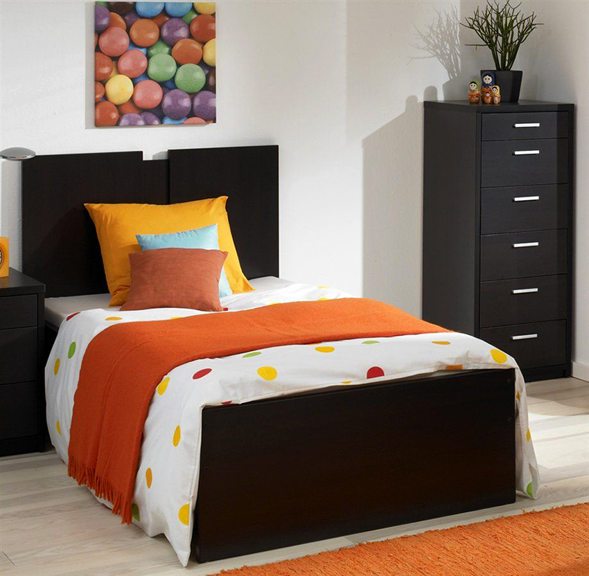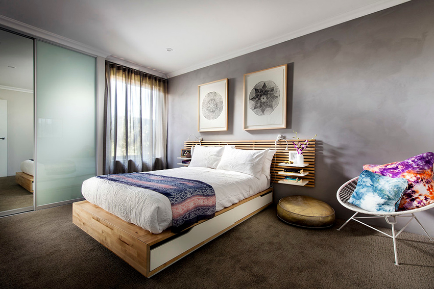 Particleboard or MDF are also often used for the production of beds. This is due to the affordable cost of the material compared to the price of solid wood. Pressed wood boards are distinguished by a rich color palette. The surface can be monochromatic or imitate wood shades.