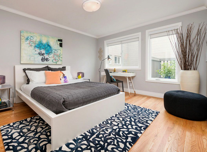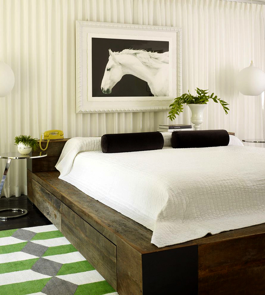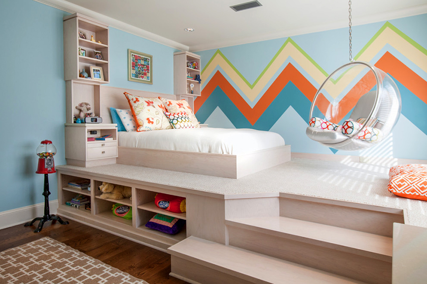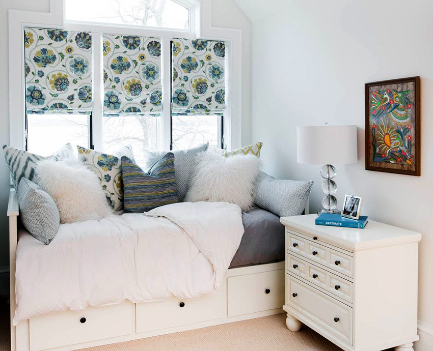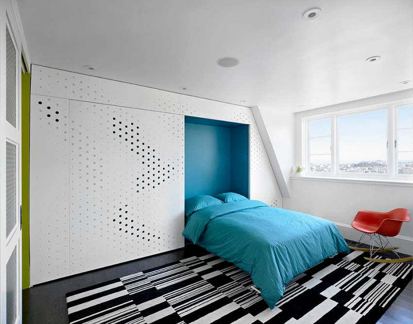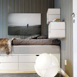 The latter design option is often installed in small rooms, where it is important to rationally use every centimeter of space. Here you can equip a spacious storage system in the bed area.