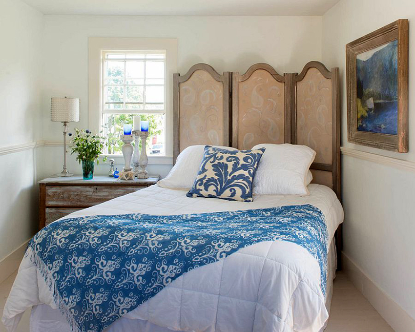 The headboard is a decorative element. It can be flat, curved, solid, openwork, wicker, lattice, vertical, inclined, upholstered with fabric or leather, decorated with carvings or paintings, as shown by photos of beds made of wood with their own hands.