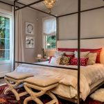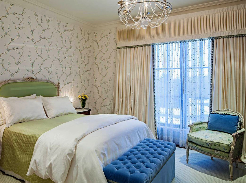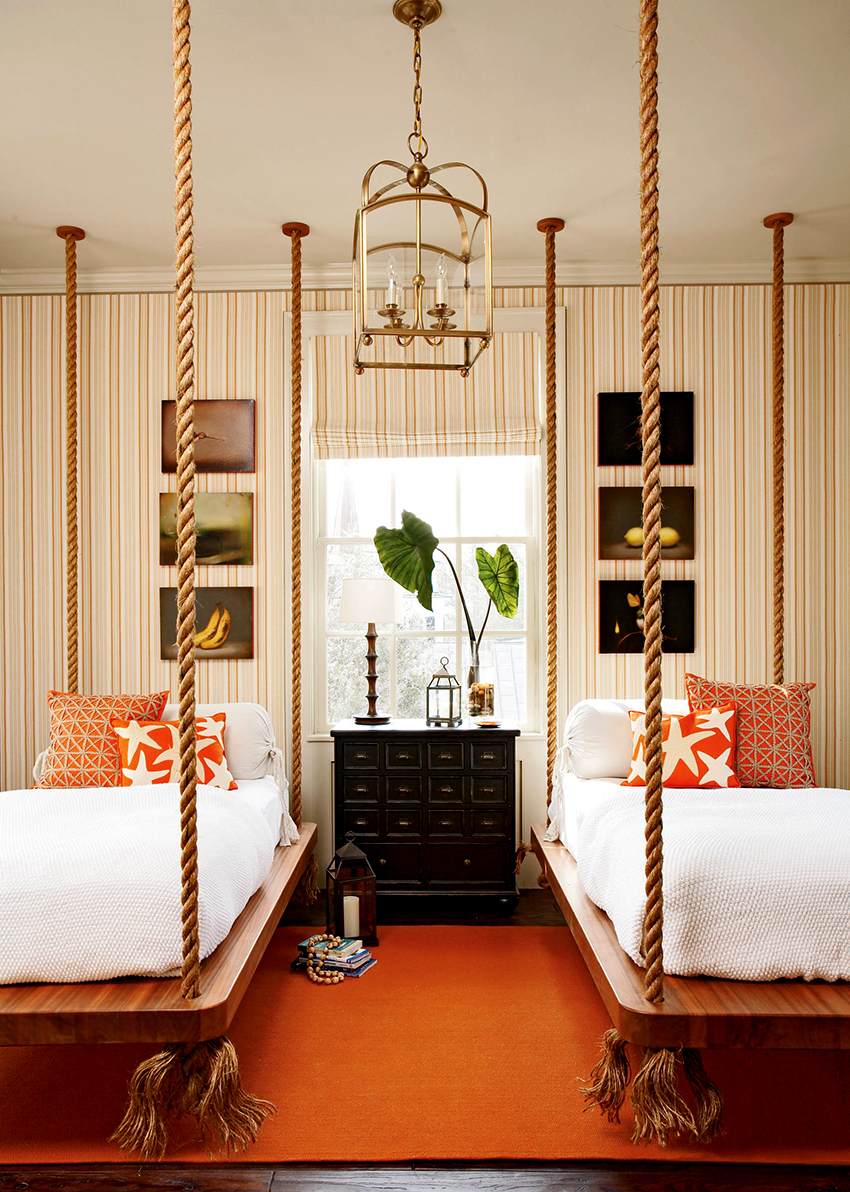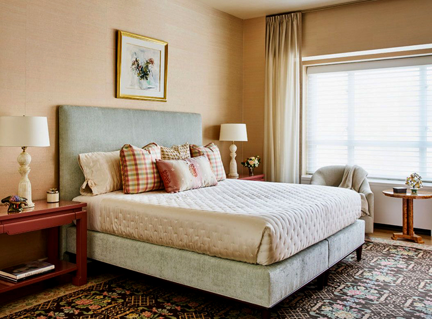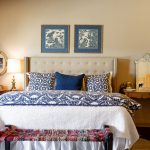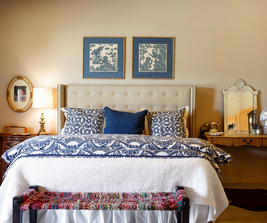 The final step is to sew on the sofa buttons by using a large boot needle and coarse thick thread. The upholstered headboard is wall-hung with wall cabinet rails.
