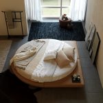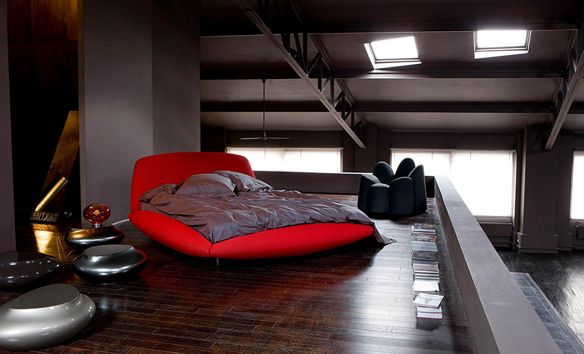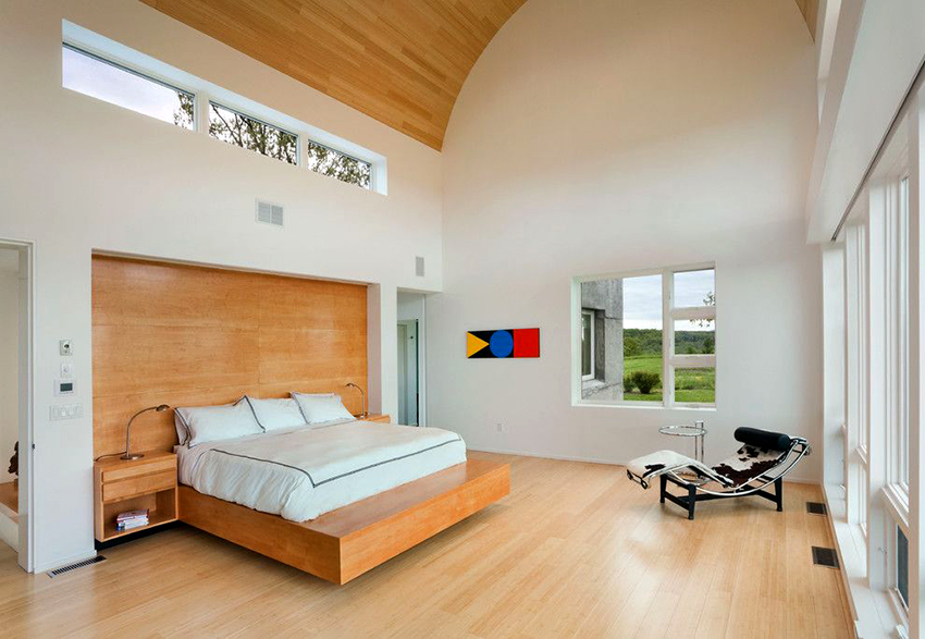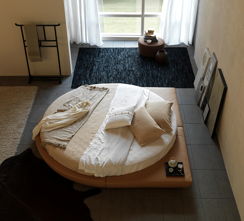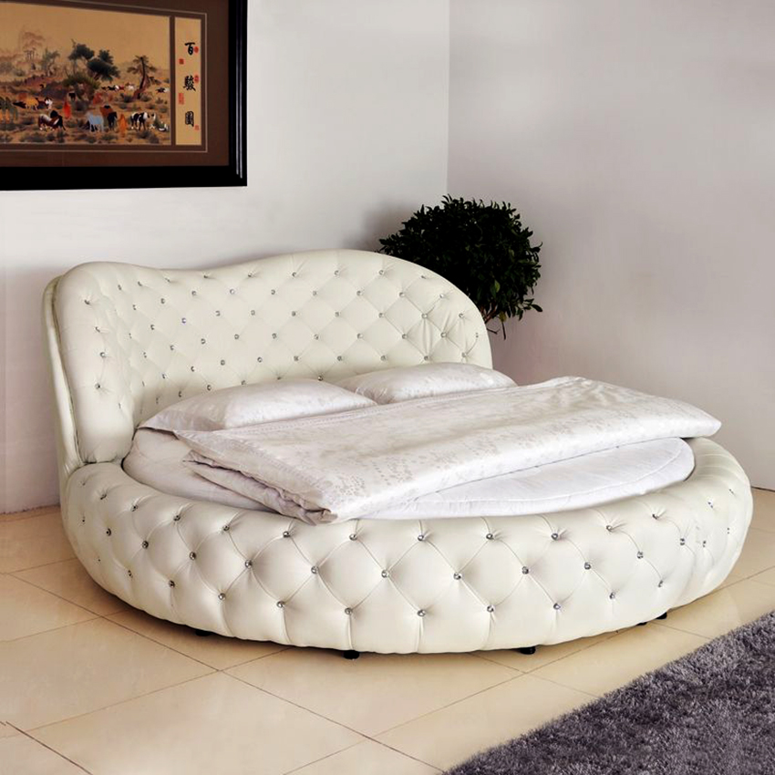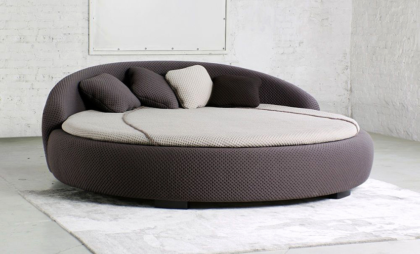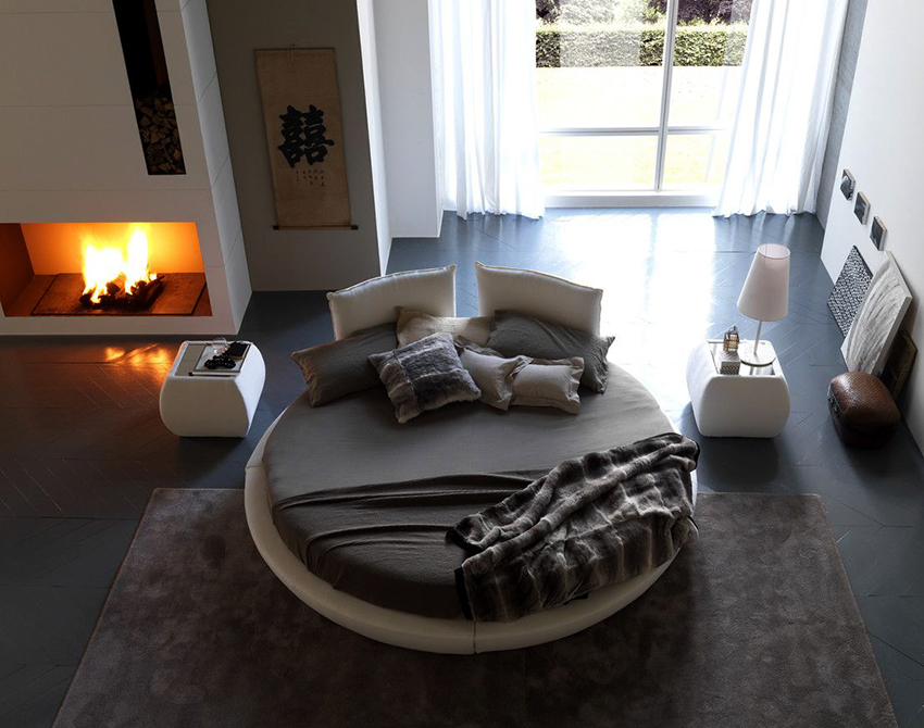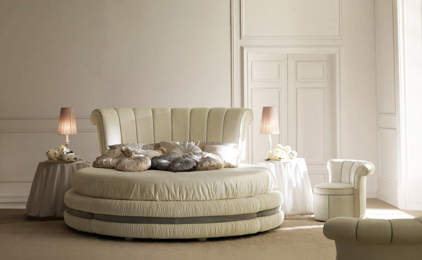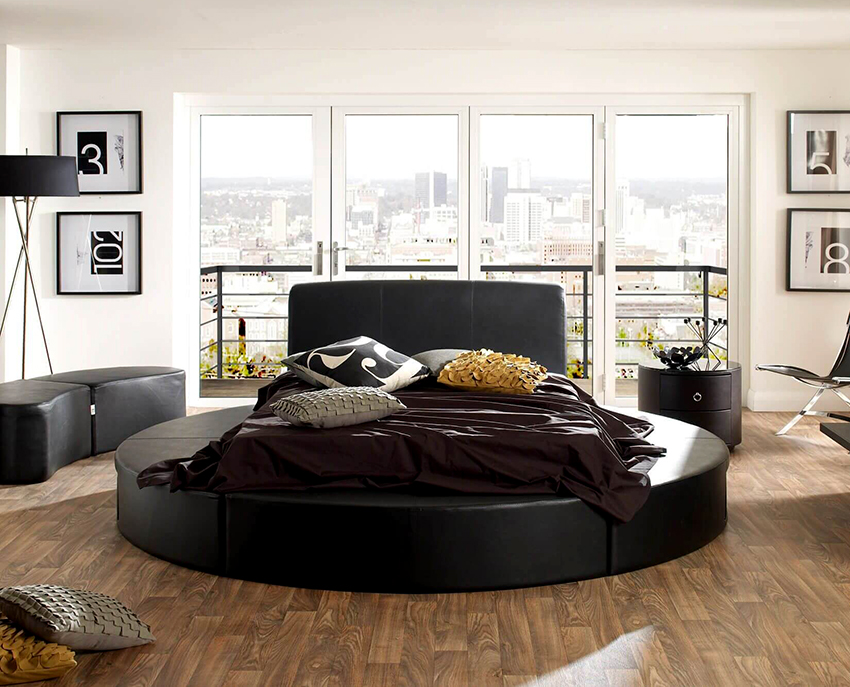 You can make a round bed with your own hands.It will be an unusual element of the room, capable of not only decorating it, but also solving problematic issues of space with curved walls. This design in modern interiors is installed in the center of a spacious room, giving it a royal luxury.