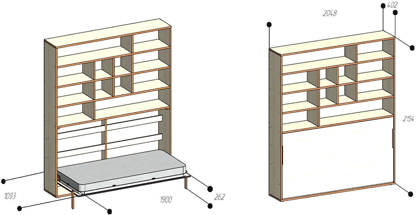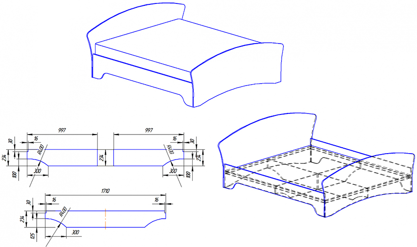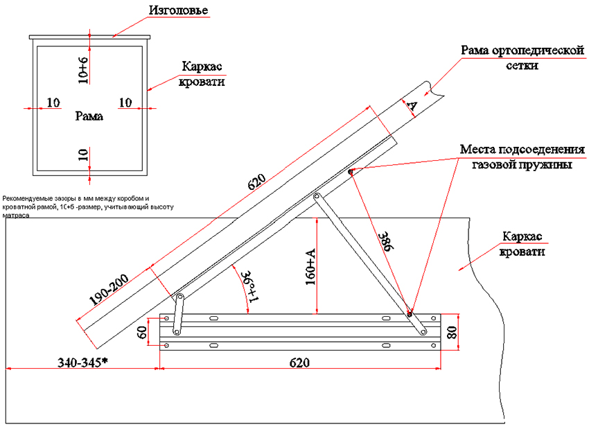 To create a bed with a lifting mechanism with your own hands, you should prepare a detailed drawing of the furniture assembly, and you can also find a similar diagram on specialized sites on the Internet. This will avoid many design errors that will subsequently negatively affect the functionality of the structure.