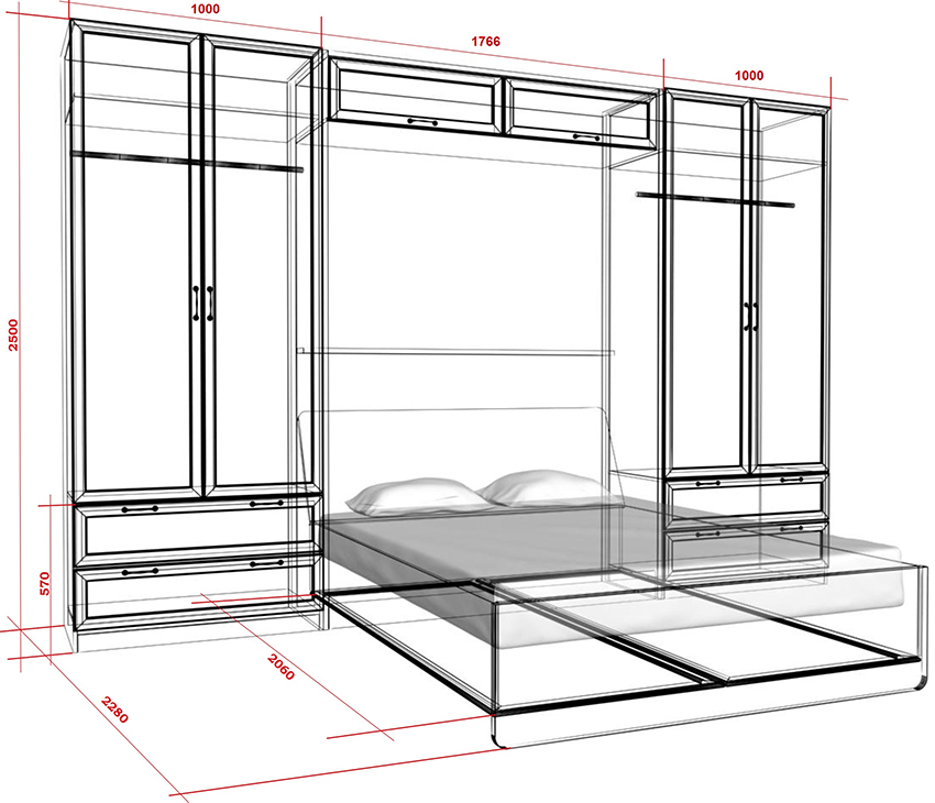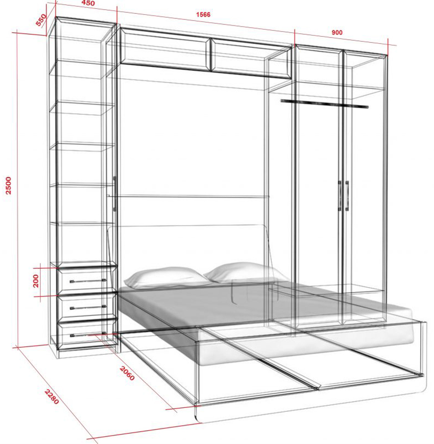 Do-it-yourself wardrobe bed made of wood: photo of drawings and progress of work