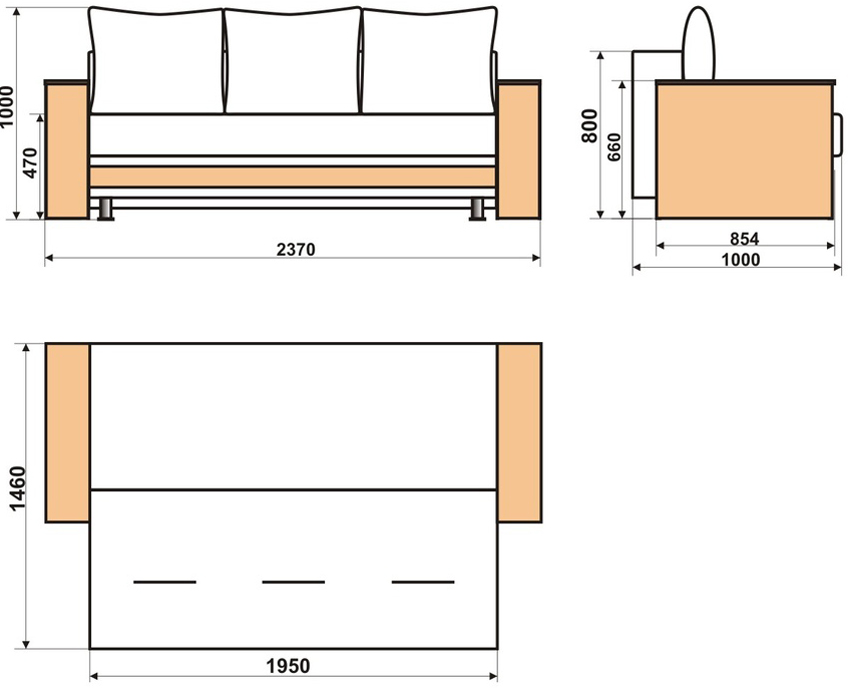 Important! The transformation mechanism is installed in such a way that a gap of 10 mm remains between the seat and backrest in the unfolded structure. It should be noted that the seat of a folded sofa should not protrude beyond the armrests.