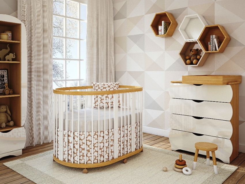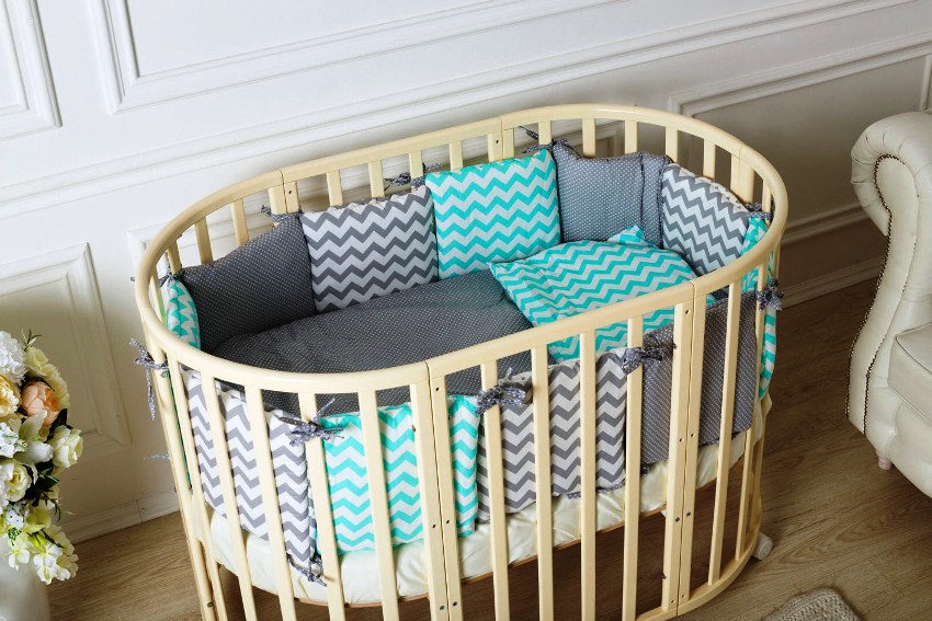 At this time, oval and round transforming beds for newborns are very popular. These designs have many advantages. The main ones are: