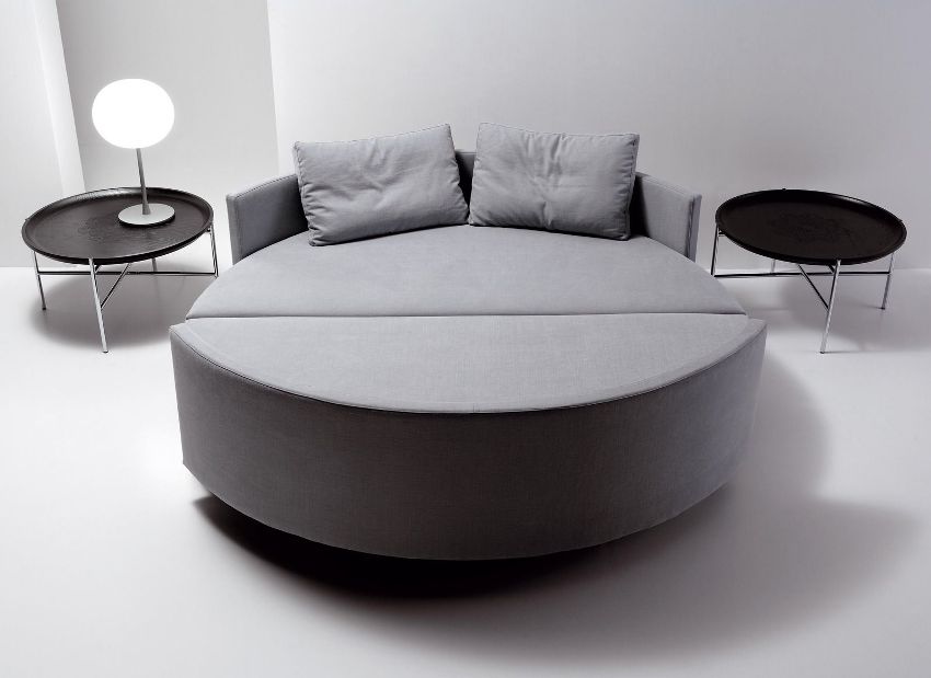 The transforming bed is an invaluable find for small apartments. Special mechanisms turn the sofa into a full double bed. Designers have worked and created a round transforming sofa bed.