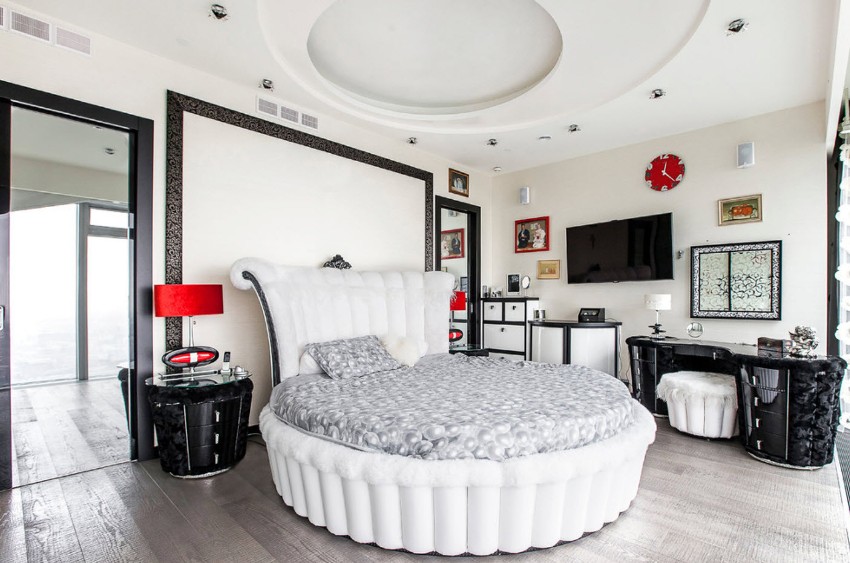 When planning the design of a bedroom with a round bed, it should be borne in mind that it requires sufficient room space
