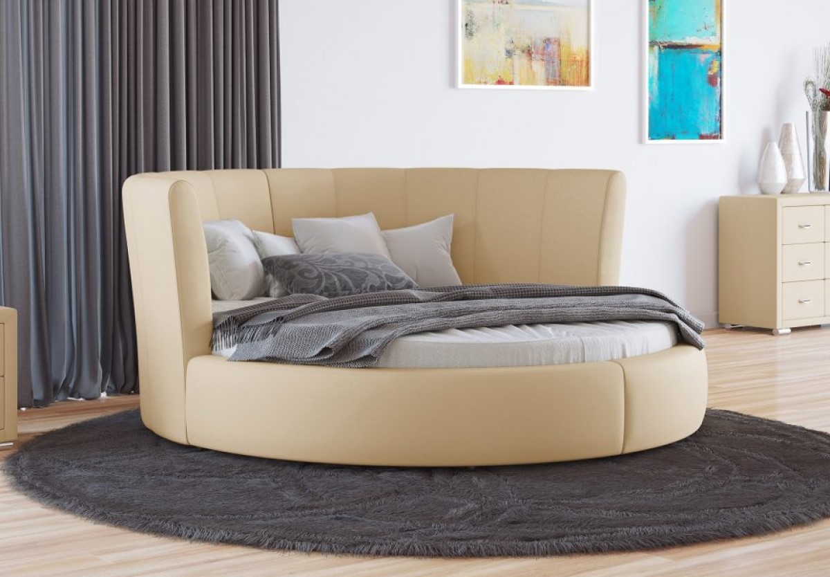 There are a large number of different models of round beds - simple round, with a headboard, with sides, on a square and round base, etc.