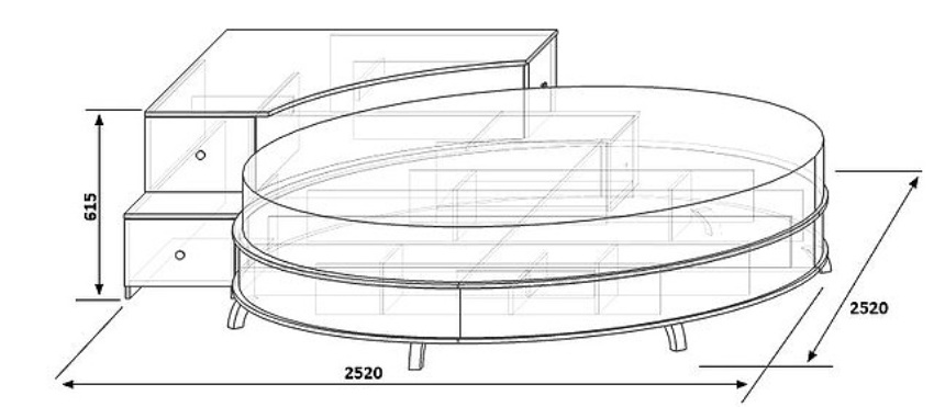 Usually the frame of such a model is made of metal and sheathed with plywood, high-quality latex is used as a sofa filler. For greater comfort, the sleeping area is covered with a protective cover. The dimensions of a round bed are usually 2 to 2.5 m in diameter.