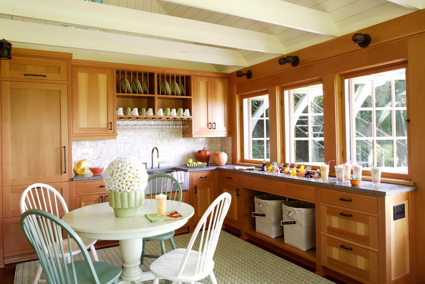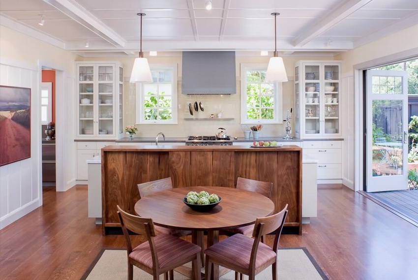 Situations when it is desirable to enlarge the tabletop of the dining table arise in almost any kitchen, regardless of its dimensions and the size of the furniture. Many people prefer to move as freely as possible in an everyday familiar environment. However, holiday dinners require more space for placing dishes, then a sliding table design is the best option. Sometimes there is a need to seat a large number of people.