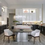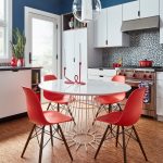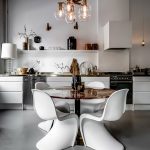 If the white kitchen table is well chosen, a luxurious interior is guaranteed. The color of the dishes and the dishes served becomes much brighter and juicier against the background of the white table top.The white sliding round table in the kitchen, which has a glossy surface, creates an atmosphere of solemnity and splendor in the area.