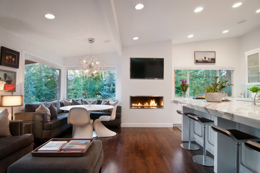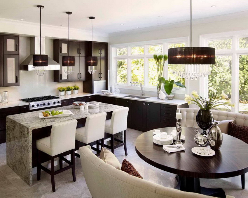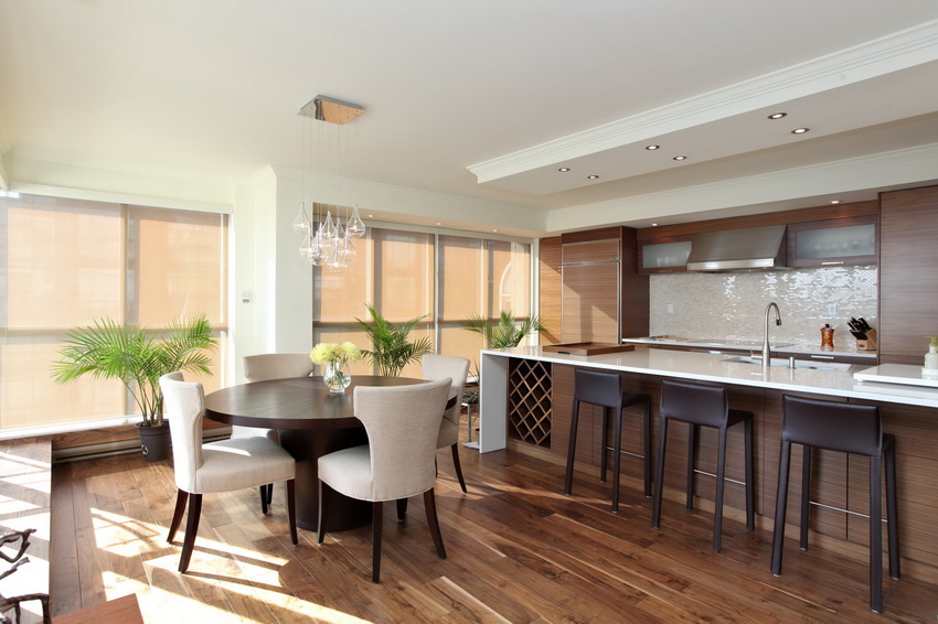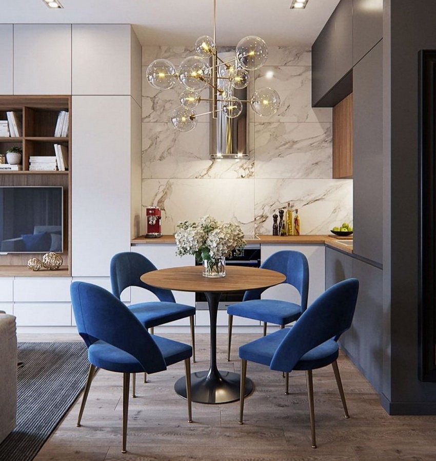 Helpful advice! Designers strongly discourage choosing a dining table model after installing work surfaces, cabinets, pencil cases and nightstands.This will inevitably lead to a situation where something that fits in the room is simply bought, without taking into account the general style of the interior.
