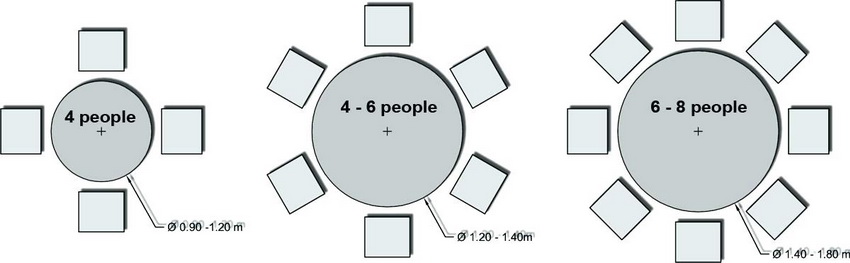 - 3 Sizes of round tables for the kitchen, calculation of seats