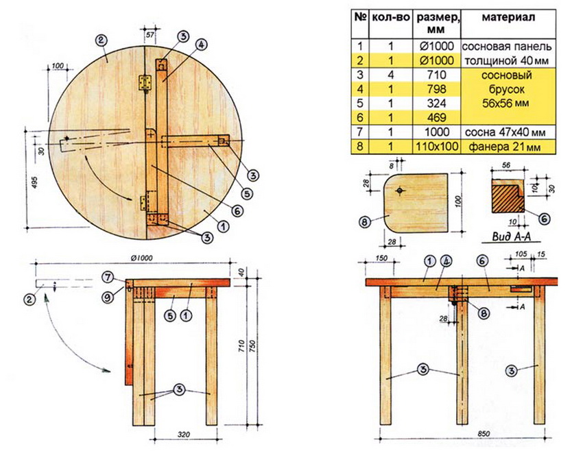 It is quite difficult to make a wooden round table for the kitchen yourself: you need skills in working with wood, stationary equipment for processing is required. It is almost impossible to achieve a smooth surface by hand grinding, make an even groove with a chisel and cut a circle with a perfect end with a jigsaw.
