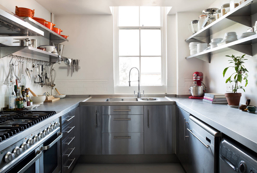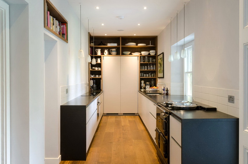 Looking at the pictures of kitchen sets, you can see that in some cases the shelves of the cabinets are left open. But designers still do not recommend doing this in a cramped room.