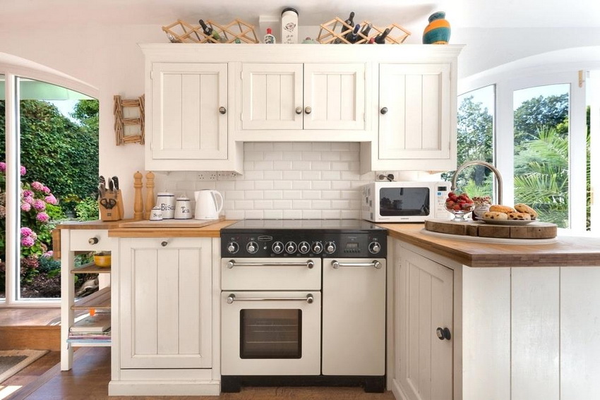 - Furniture size. For a kitchen with a small area, furniture of small dimensions is needed. It is also advisable to install a corner set, which will be spacious and compact enough.