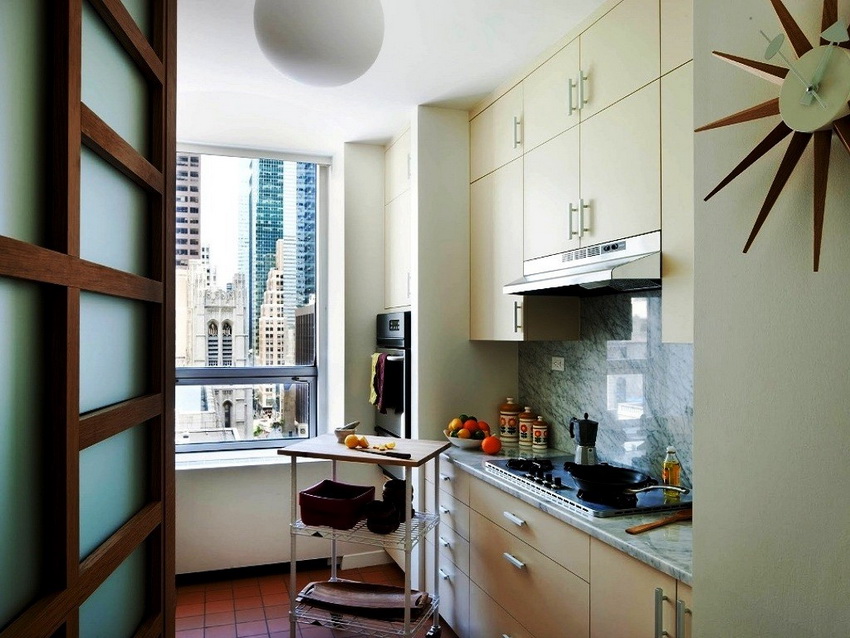 Effective optimization of the storage of kitchen utensils is one of the main rules for saving space in a small kitchen