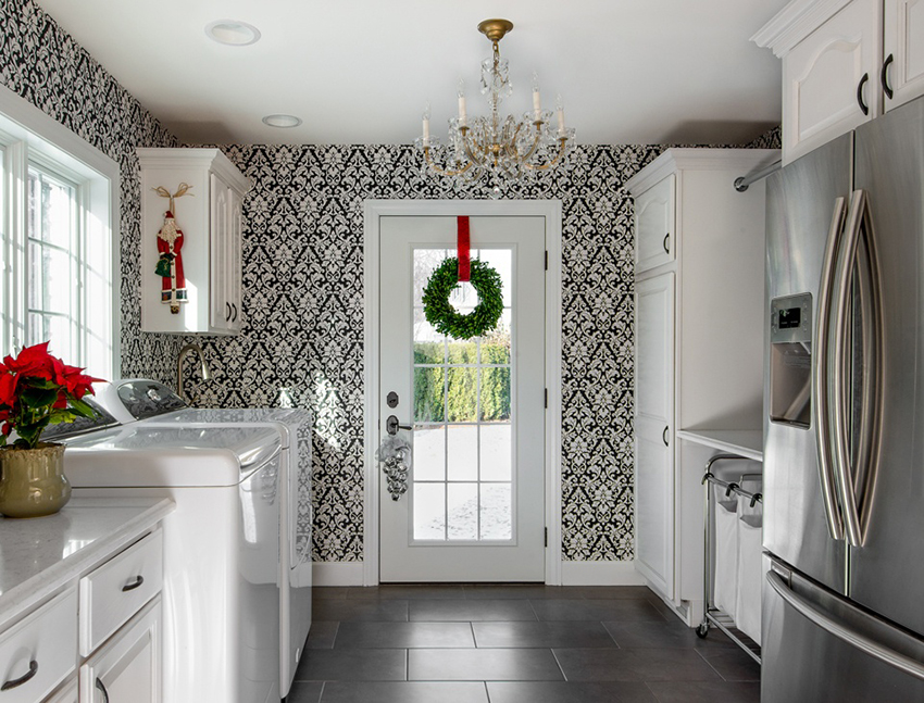 - Facade design. In addition to the fact that glossy facades visually increase the area, one should also not forget about the need for mirror or glass inserts. The use of stained-glass windows, which play the role of an accent element in a monochrome space, is considered relevant.