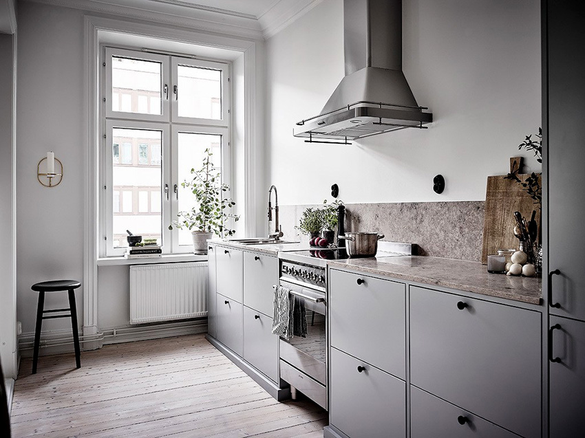 The most comfortable is the kitchen, where these objects form an equilateral triangle, in which the length of the sides varies from 1 to 2 m. An isosceles working triangle is considered suitable, but less successful. If the dimensions of this space deviate from the norm, then the process of cooking in the kitchen becomes more complicated.