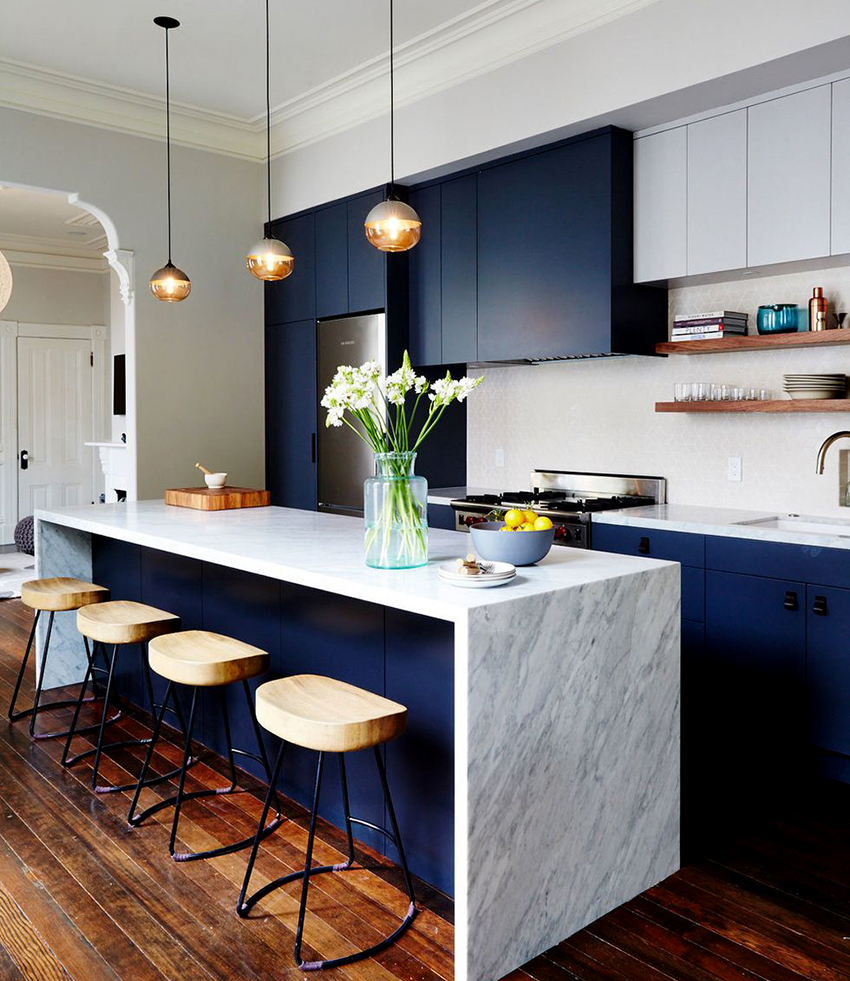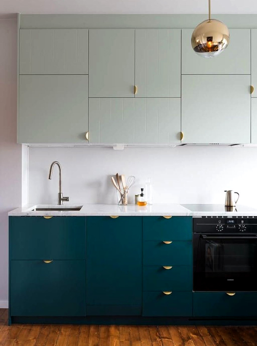 Beautiful kitchen sets are also obtained by combining light with dark colors. This technique allows you to structure the space and create accent areas.
