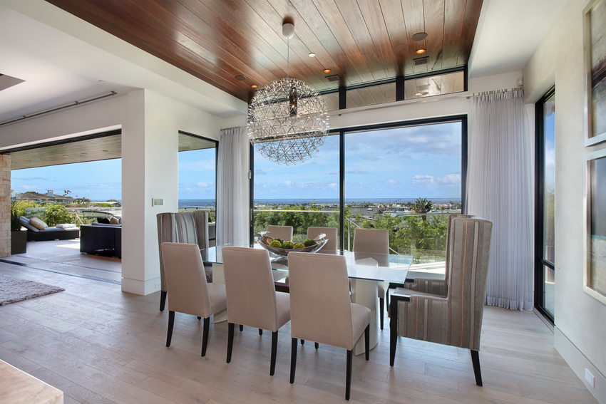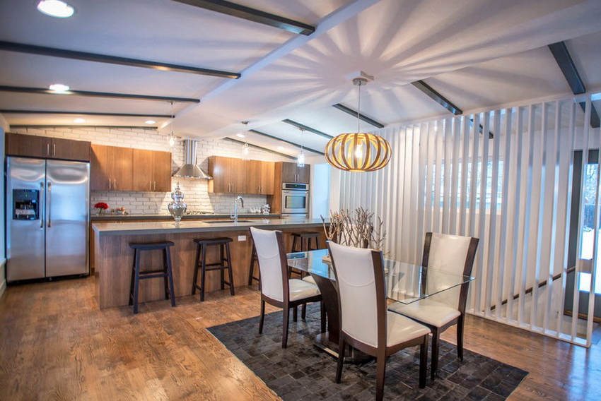 Modern design options and space zoning provide a variety of solutions used in any style and direction. The use of glass furniture is very practical and convenient, because glass is in perfect harmony with other materials such as wood, metal and stone. Most often, glass surfaces are combined with chrome parts and elements.