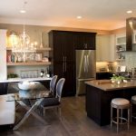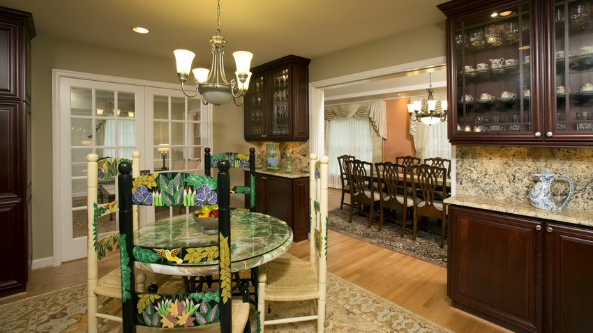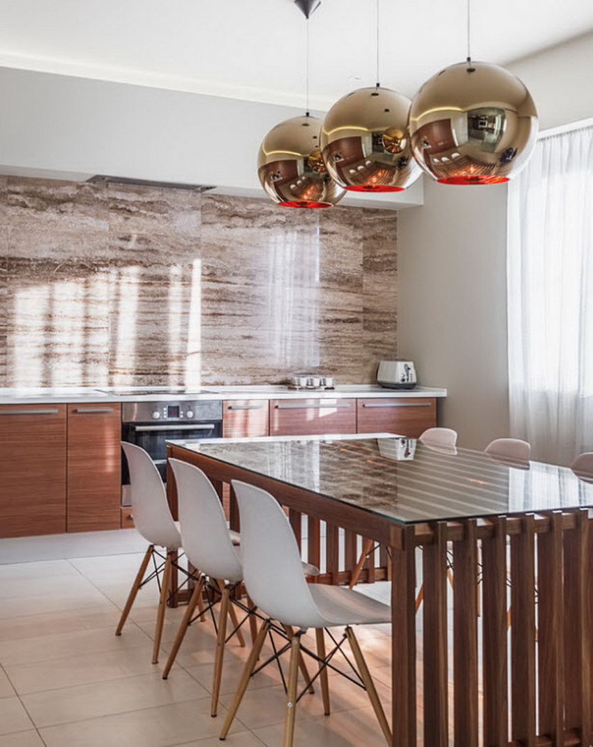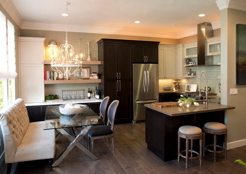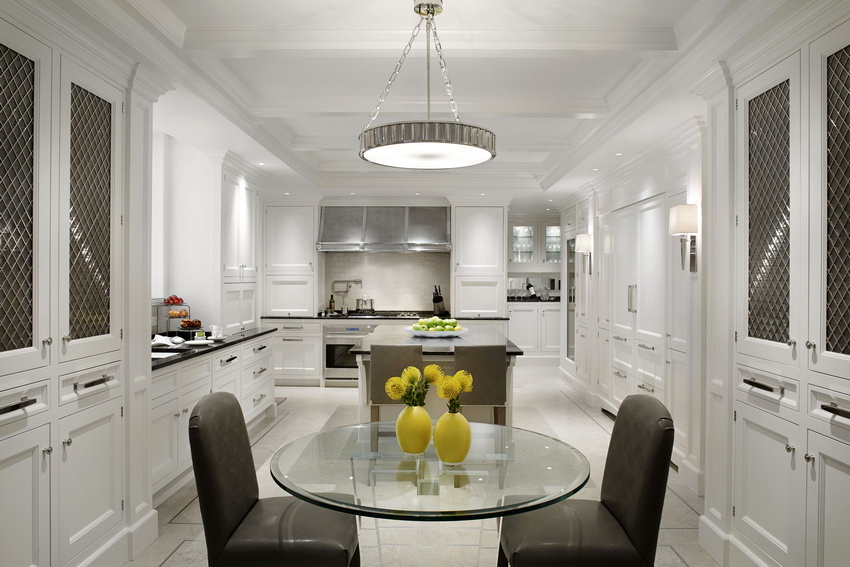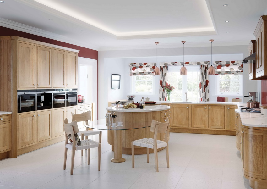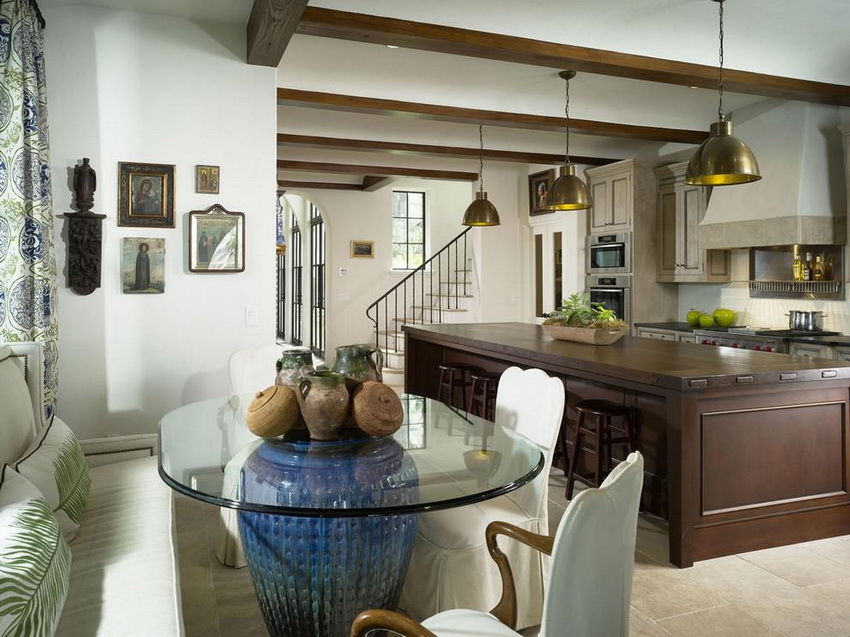 Dinner table plays an important role in the dining area, because it is behind him that the whole family will spend a lot of time. The most convenient and beautiful is a round kitchen table. A large number of guests can easily fit behind it.