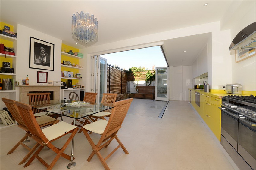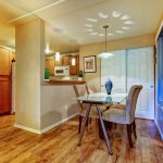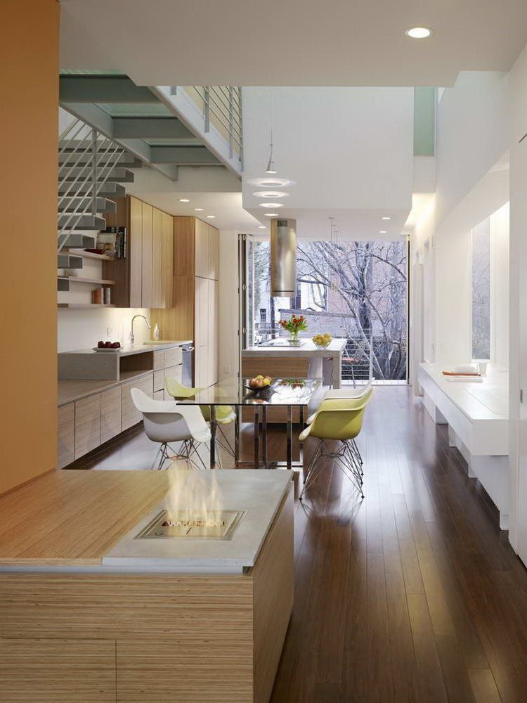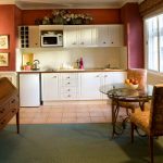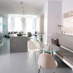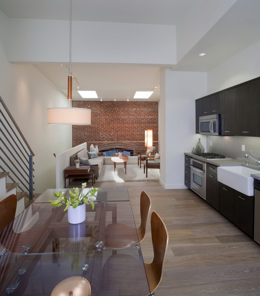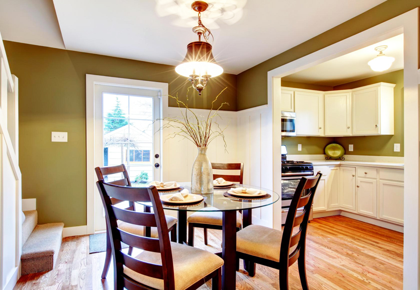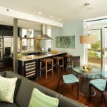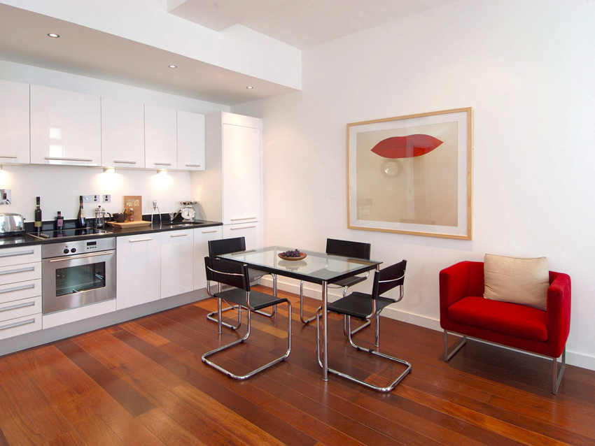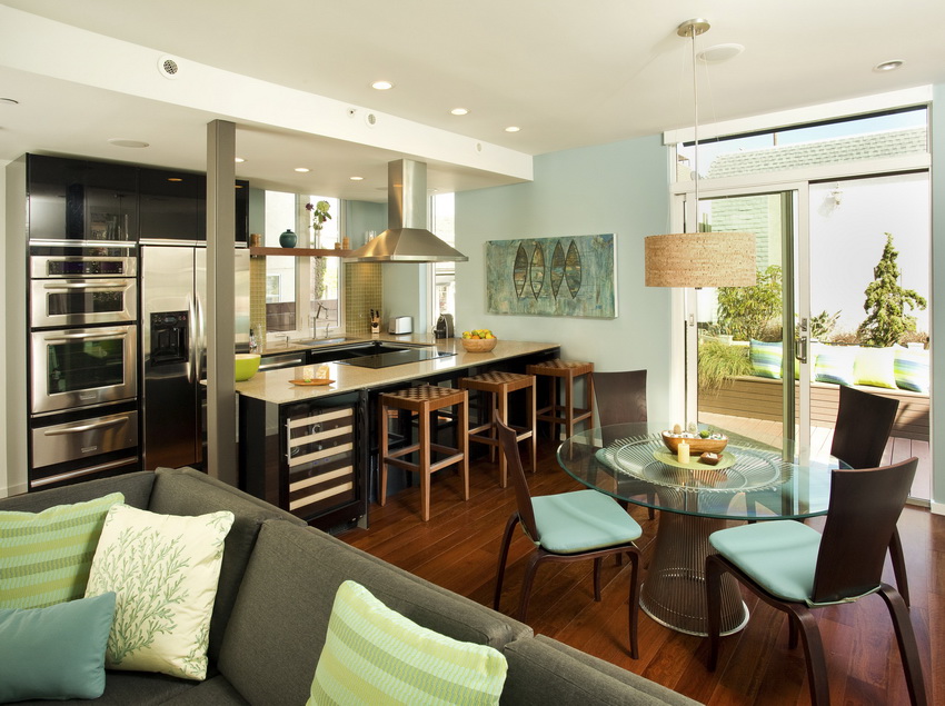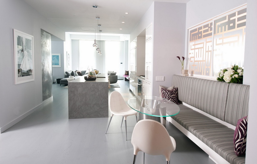 Minimalism is great for small living rooms and kitchens, as well as for fairly spacious rooms. A small glass table (instead of a massive wood structure) will provide a feeling of lightness.