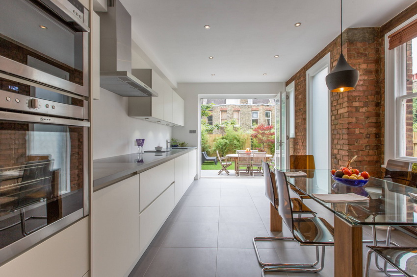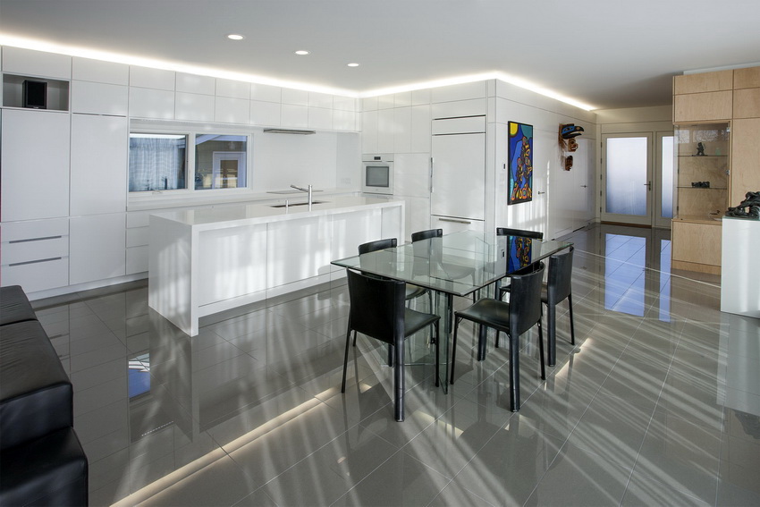 Thanks to the transparent surface of the countertop, it is possible to visually expand the space of the kitchen