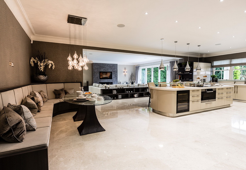These pieces of furniture are most beneficial for decorating a kitchen in a modern style. In large living rooms, a furniture set with a glass table can be placed in the center of the room. In this case, it will become the main detail of the interior. Also, furniture can be placed in the corner of the room or on the side, which will not make this furniture less visible or unattractive.