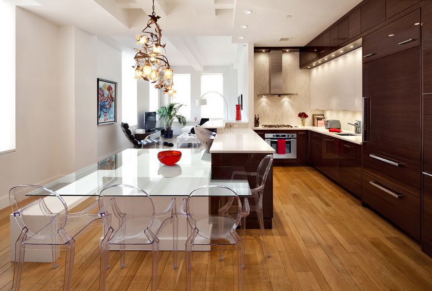 Glass table in the kitchen: how to combine with the style of the interior