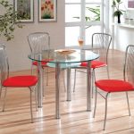 Before buying a glass table, you need to determine if the table fits into the kitchen interior. The entire room should be decorated in the same style, so that neither guests nor hosts will feel disharmony while inside it. Glass are most suitable tables and chairs for the kitchen and apartments made in high-tech style, which is characterized by the use of glass and metal.