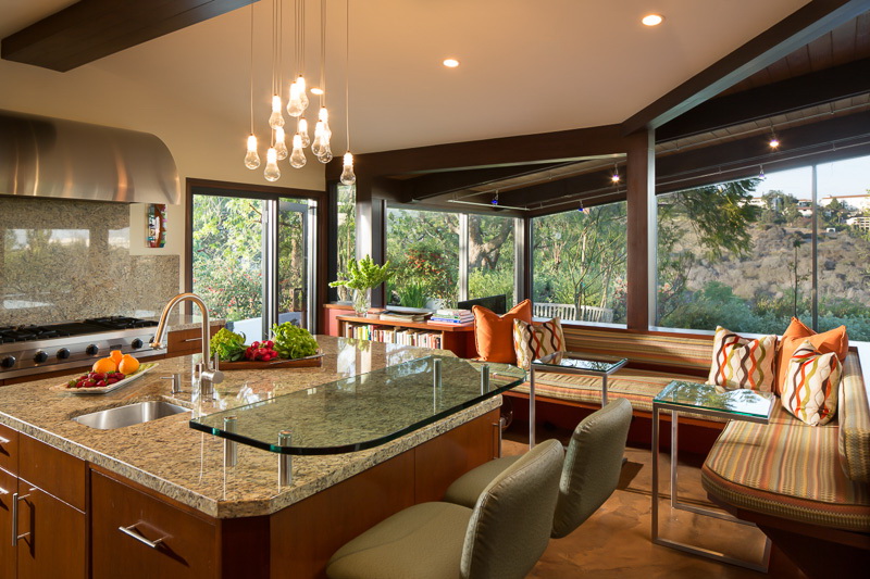 The only problem with glass kitchen countertops is hand marks on the countertop. They are especially noticeable in photographs. You can get rid of this problem by covering the surface of the table with a special compound. The glass surface requires little maintenance.