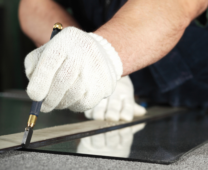 Place the glass for the table on a flat surface. Then you need to mark up with a pencil and only then cut the material. To cut, you need to moisten the tool with vegetable oil, attach a ruler to the markings and walk along the line with a glass cutter. As a result, a slight indentation will remain on the glass sheet.