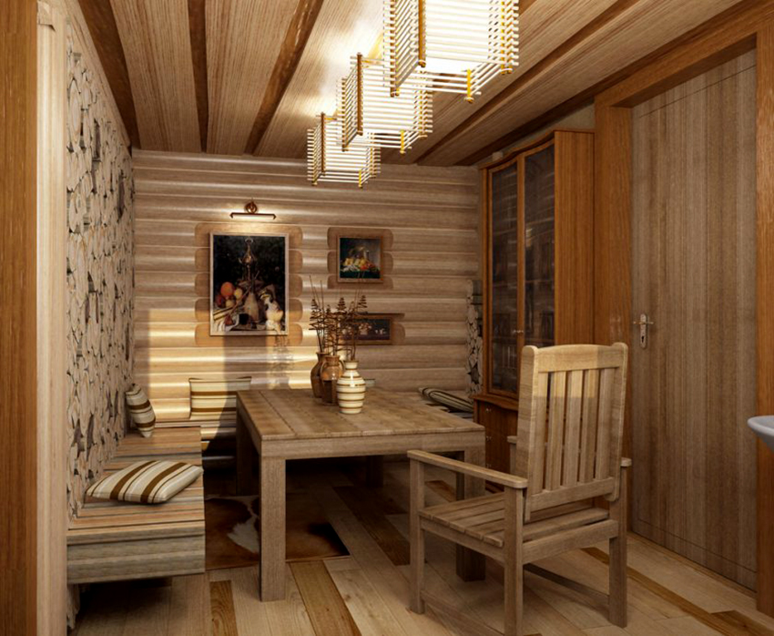 It is recommended to use natural material for the manufacture of furniture. When choosing lamps, dishes, slippers, napkins and other items used in the bath, you must strive for naturalness and environmental friendliness. This brings harmony and has a beneficial effect on the psychological perception of the environment, on the mood.