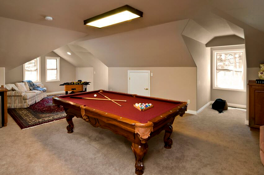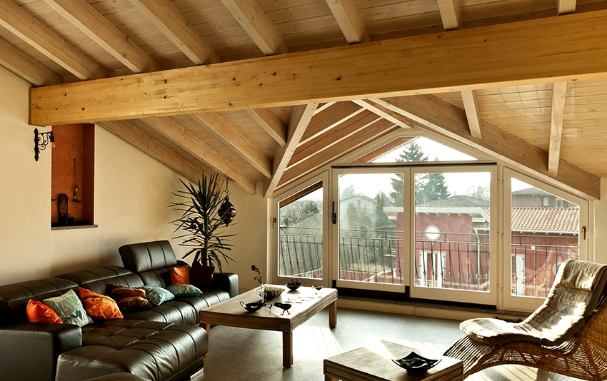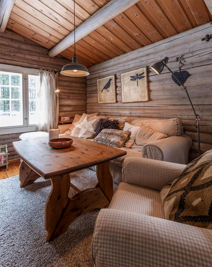 It is worth decorating the ceiling in the rest room only if it is high. Beams, lattices, lamps, built into specially designed zones, make the upper part of the room expressive, but at a low location, they "crush", "land" the room. The cosiness is created by soft spreading light.