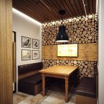 If the rest room can only accommodate a table and benches, you should not despair. Several bags of flax, decorated with elements of natural material (glued peas, pine nuts or flax, sunflower seeds), filled with fragrant herbs for tea drinking, skillfully hung on the walls, will give the room a unique character.