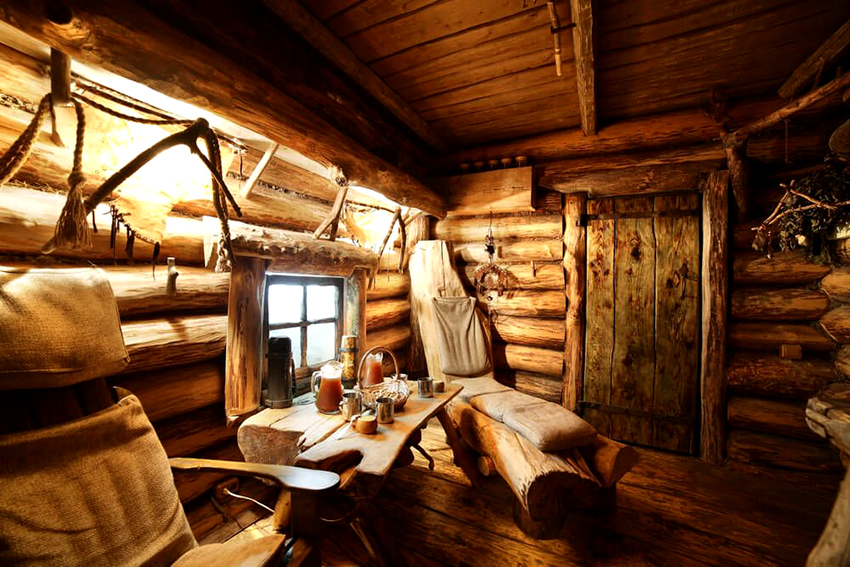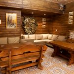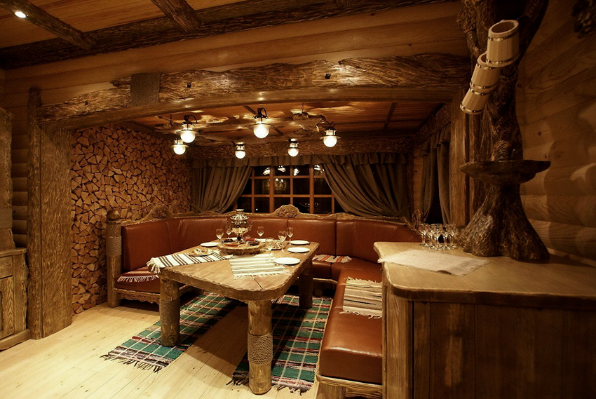 Rest in a bathhouse has significant differences from rest in any other room: a special physical condition, a desire for communication, a lack of desire to retire. Consequently, the break room needs a table and chairs (or other seating furniture) that will bring everyone together over a cup of tea. Mandatory requirement: the surface of such furniture must be perfectly sanded so that the body does not feel discomfort when touched. It is necessary that the dimensions of the countertop allow the installation of sockets with jam and honey, as well as a samovar - an essential attribute of a real Russian bath.