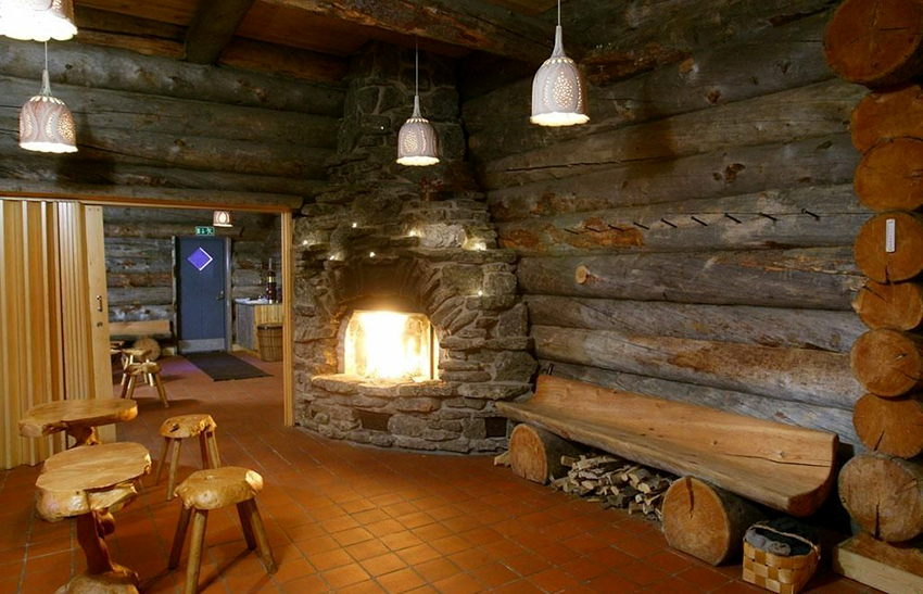 In baths of a modest size, a relaxation room is often combined with a changing room. In such cases, an artistically decorated wooden screen, in harmony with the main furniture, perfectly serves as a partition and decorates the room.